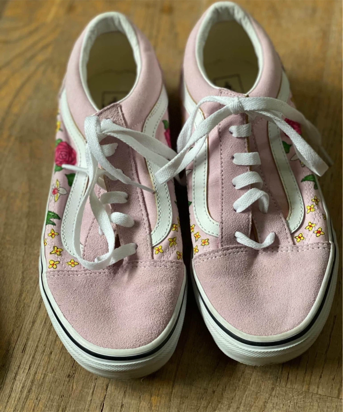 Selling a pair of Vans Old Skool sneakers in a cute floral pink design! They are a kids size 6.5 US and in excellent condition.