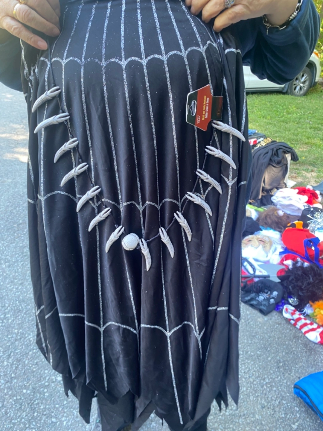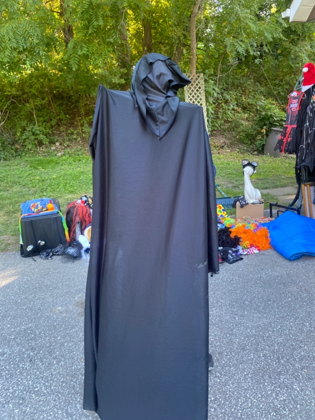 Selling a Halloween costume that includes a black cape and a necklace. The cape features a hooded design and is in great condition. Perfect for Halloween or costume parties! $5 capes Necklace $1