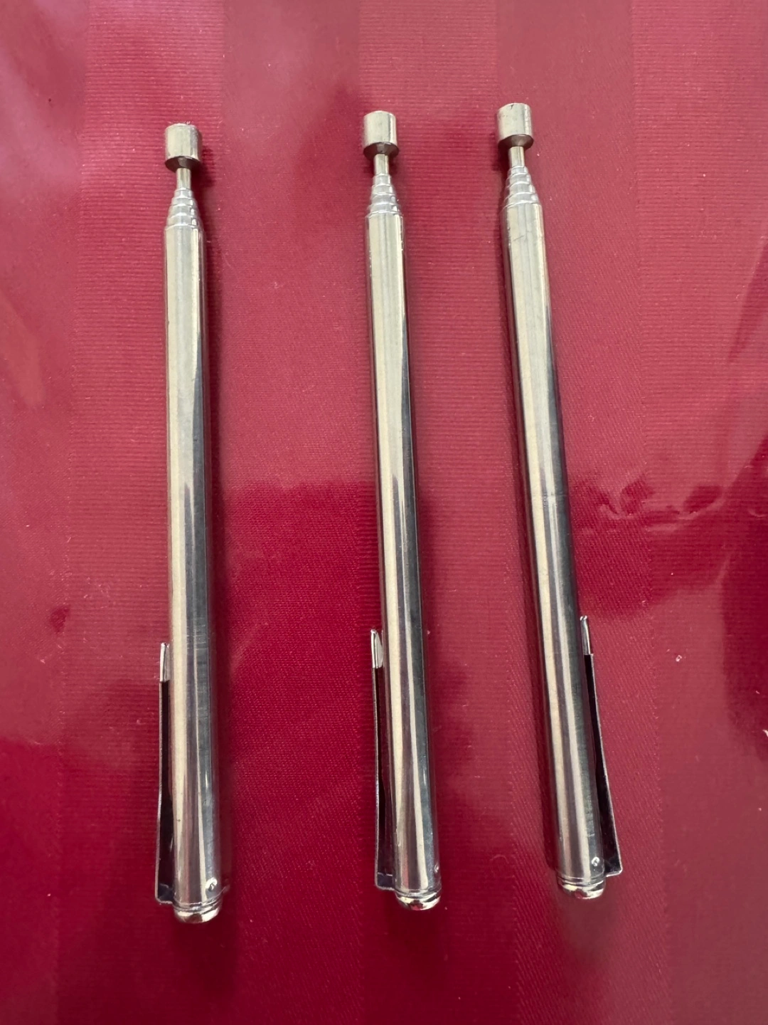 Selling a set of Brand New three telescopic magnetic pick-up tools. They're great for retrieving small metal objects from hard-to-reach places. Perfect for DIY projects or automotive repairs!