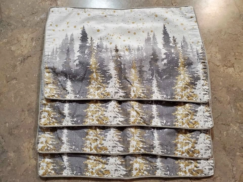 Set of 4 glittery Christmas placemats. Only used as decorative placements for one season. Great condition and freshly washed. 18x12 inches. Cash only.