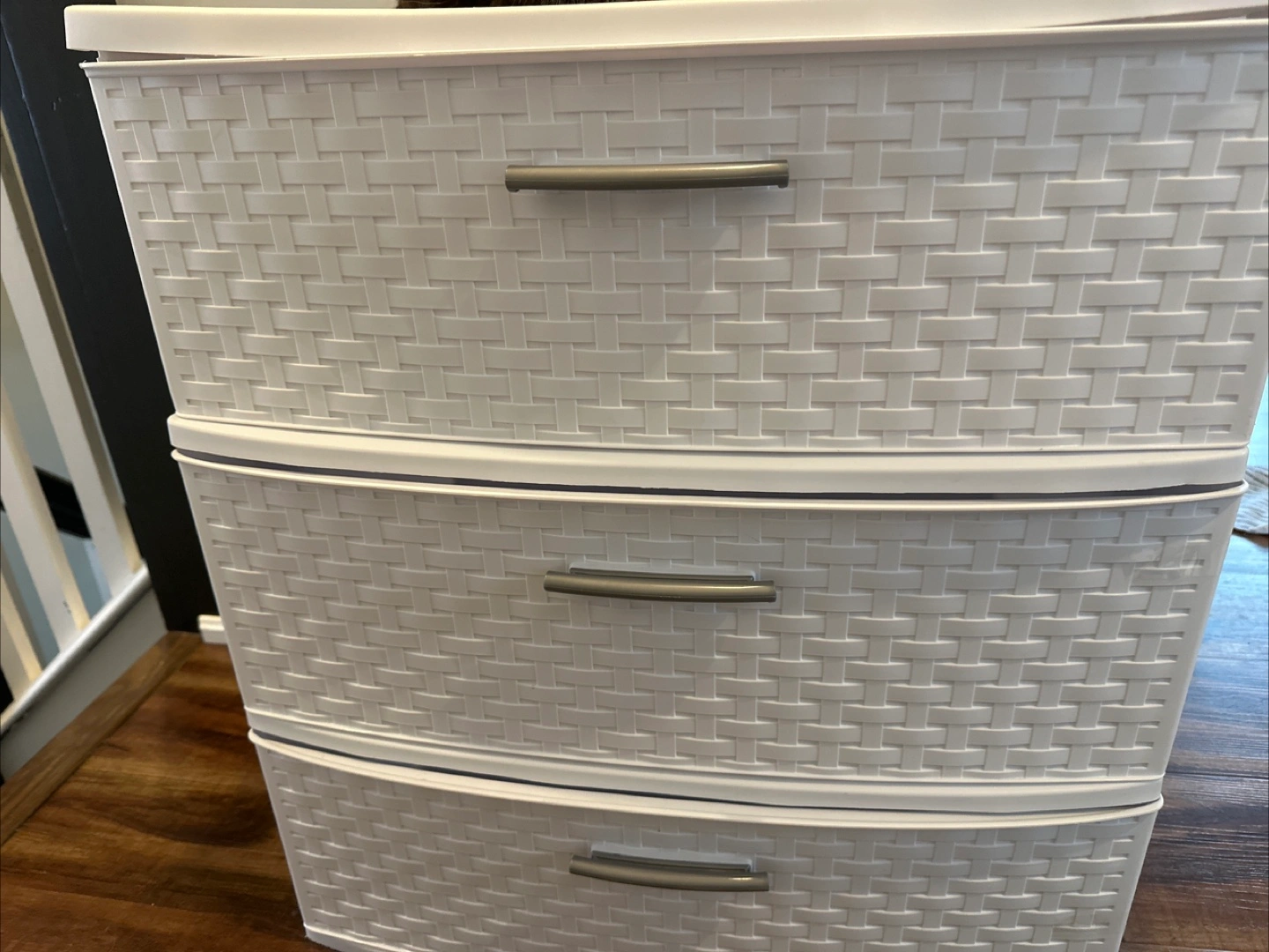 Selling a handy white woven-style storage unit with three drawers! It's great for organizing items around the house. The drawers are easy to pull out and provide ample space. Perfect for a closet, bedroom, or any room needing a bit of tidying up.