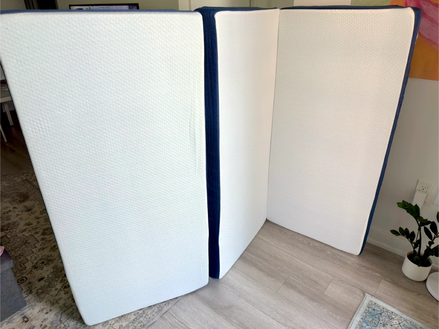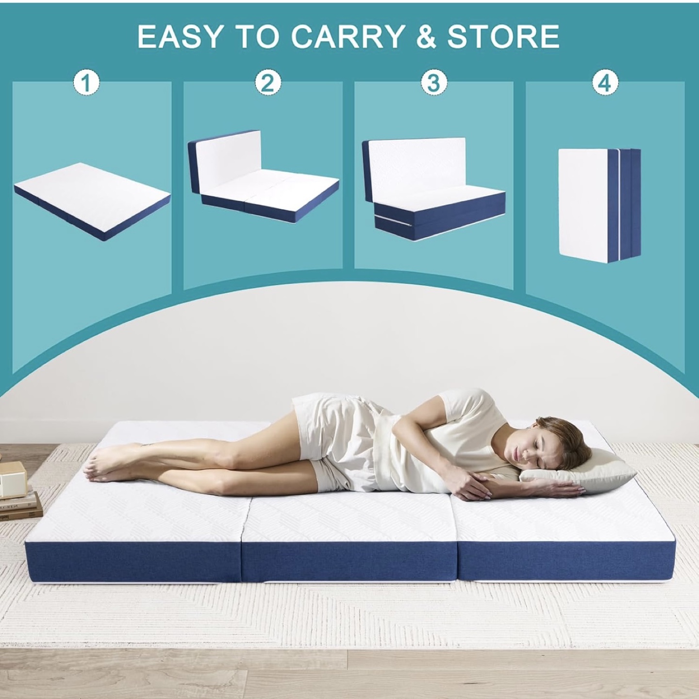 Tri-fold memory foam mattress – folds easily for storage or travel