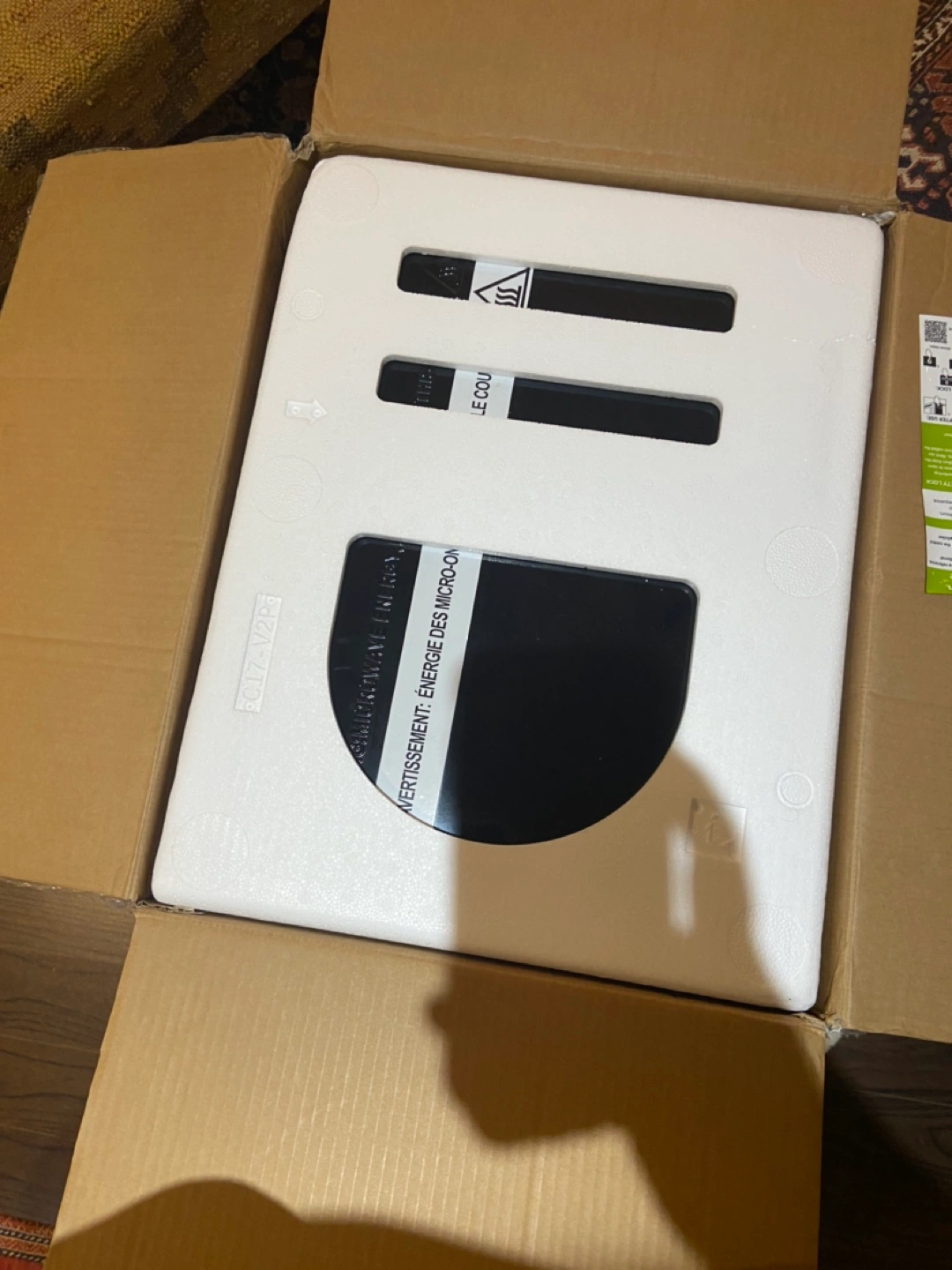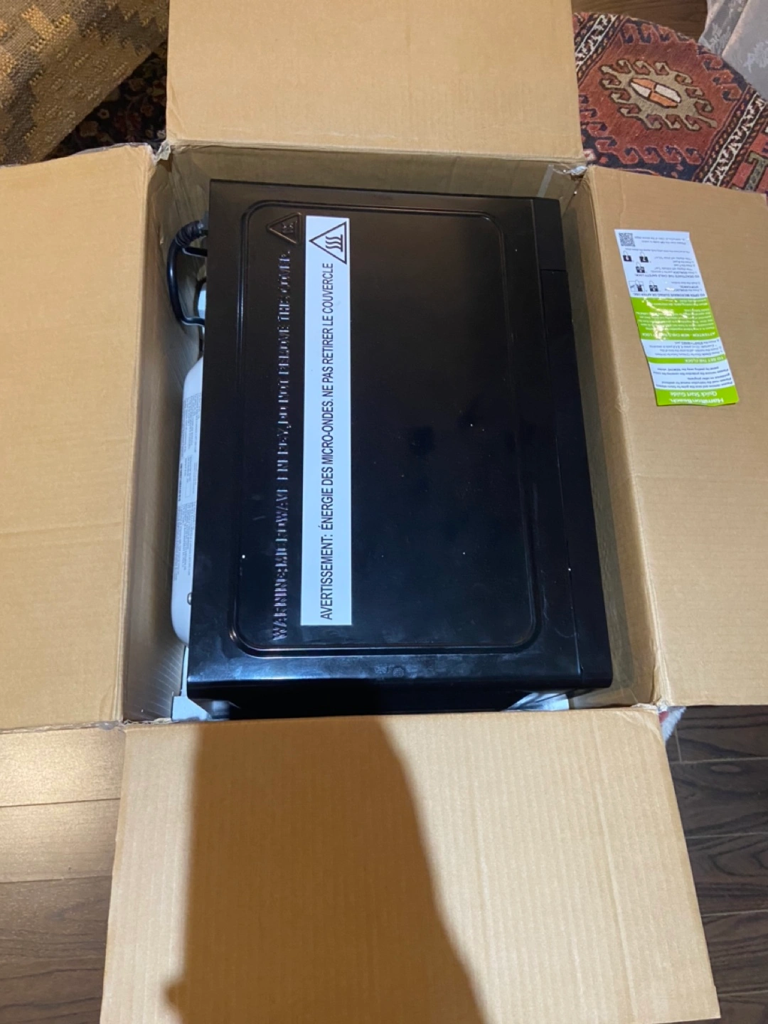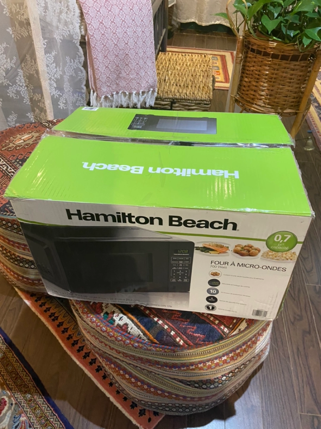 Selling a Hamilton Beach 0.7 cu ft microwave in black. It's in great shape, barely used and ready for a new home! It's a compact size, perfect for smaller spaces. Features include a child safety lock for added peace of mind. The original listing price was $59.97. In box.