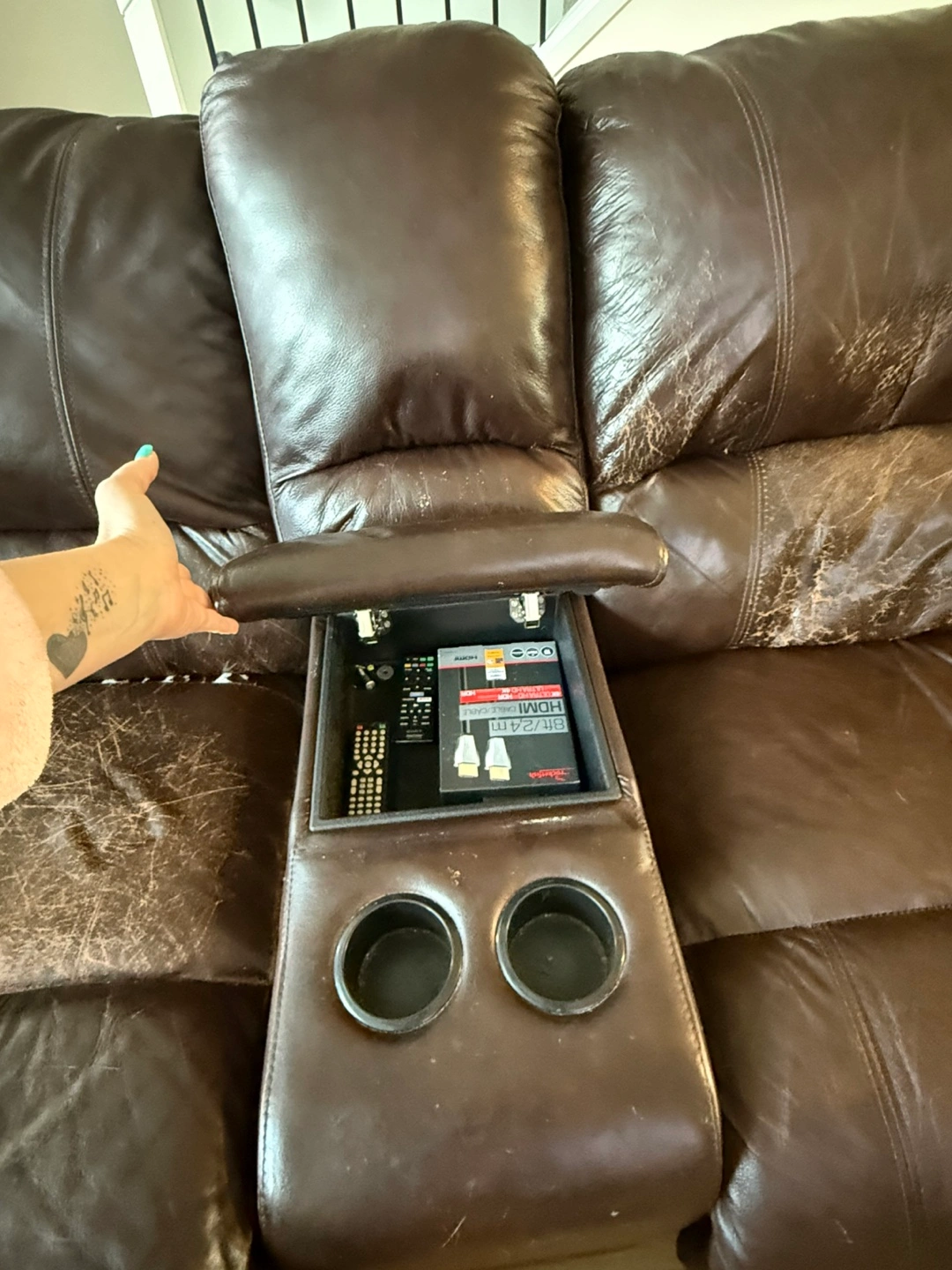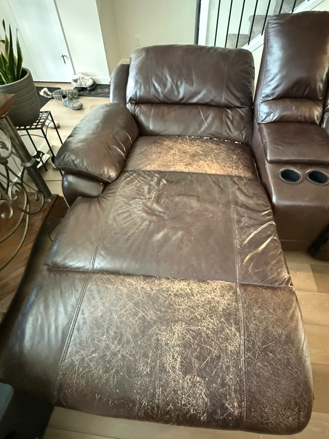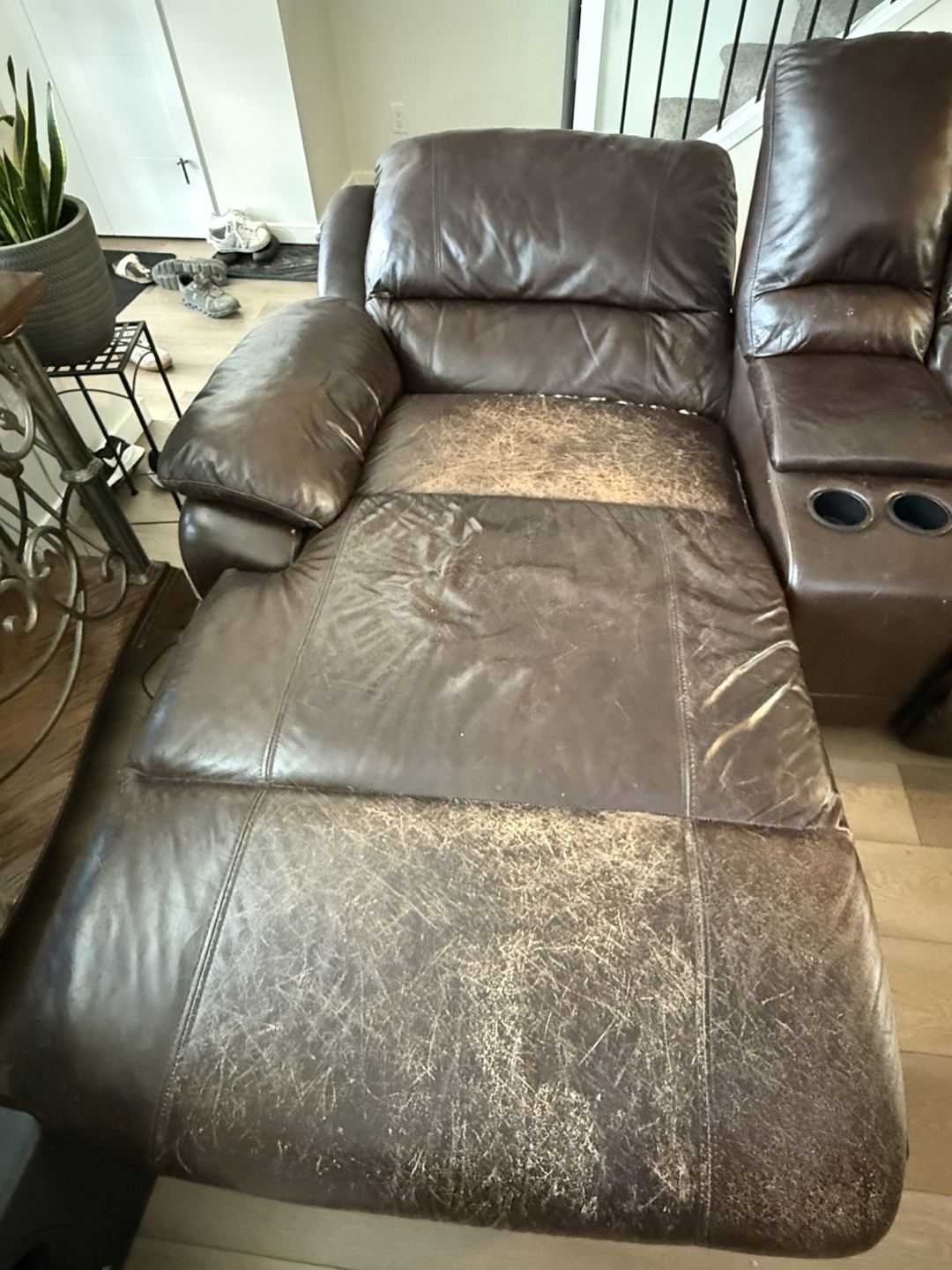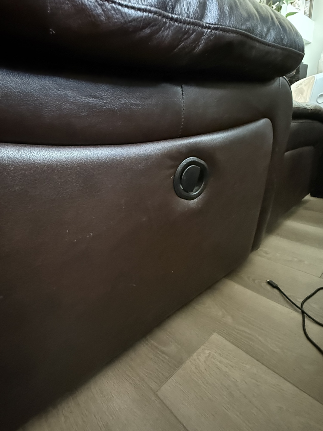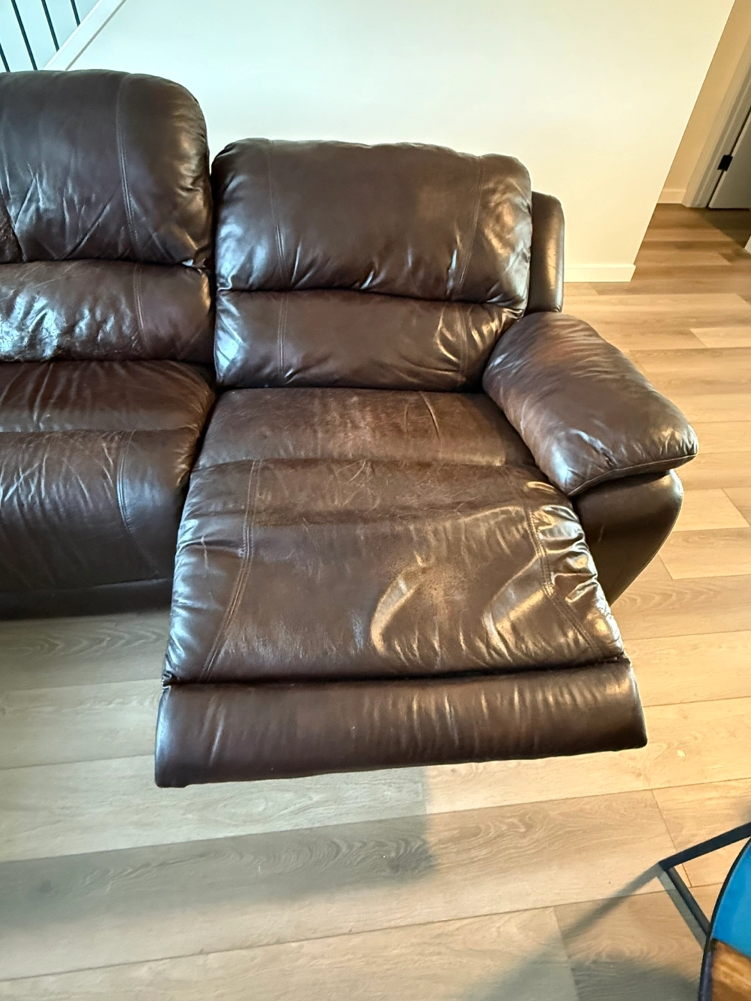 The one end has an electric recliner and the other end with the chaise lounger and the back also reclines. Couch is very comfortable and has normal wear, see photos.
