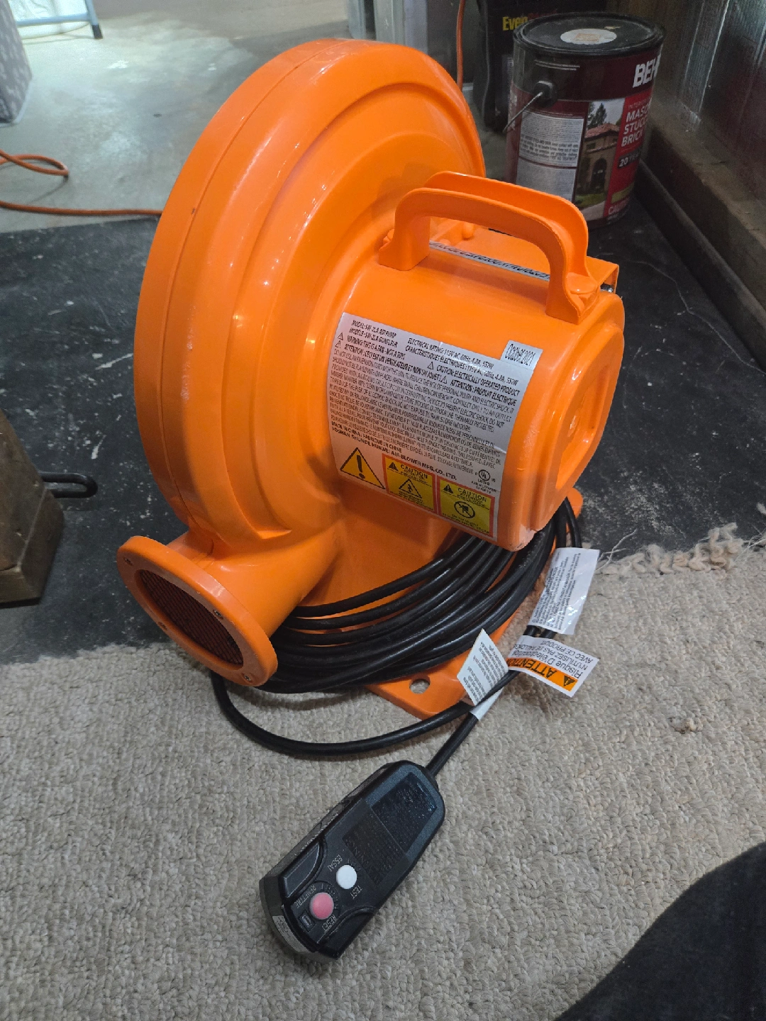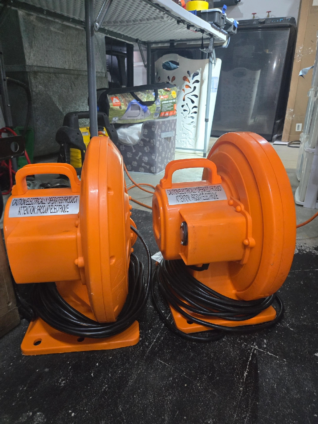 Selling an inflatable bounce house blower fan in orange. It is in good condition and ready to get your bounce house up and running for some fun! I can sell you one or both in one price package.