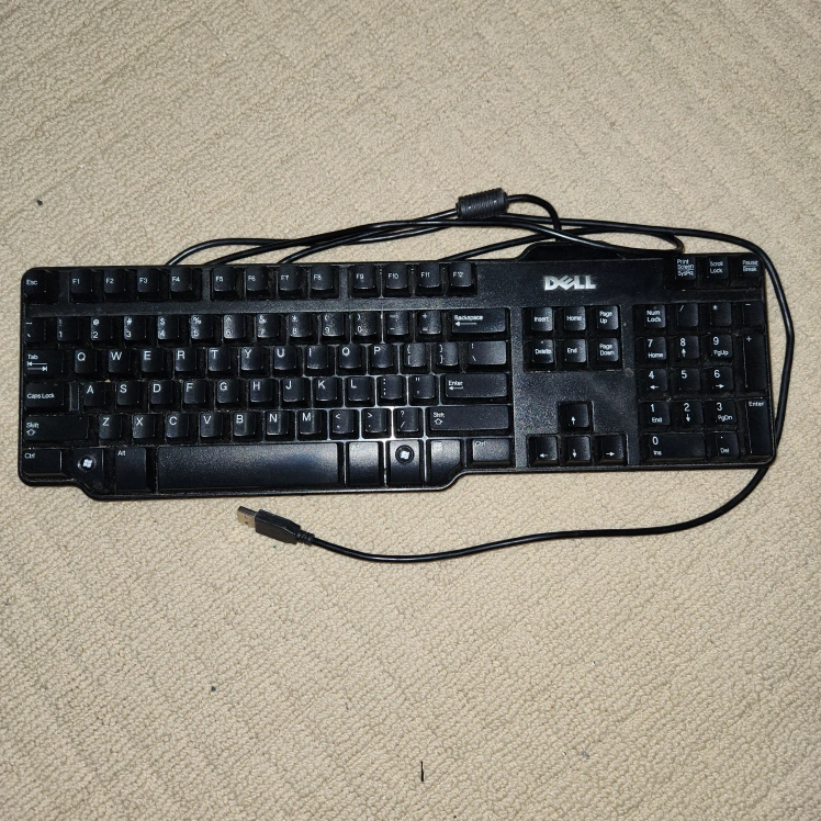 Selling a Dell wired keyboard. It's in good working condition, perfect for your home or office setup. All keys are functional and the cable is intact.
