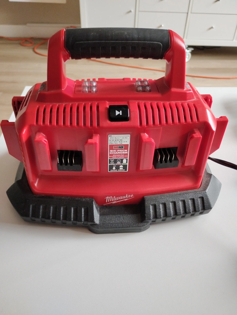 Selling a Milwaukee M18 l Bay Simultaneous Charger! It's in new condition and ready to get your batteries charged up quickly. This charger is designed to charge 6 batteries simultaneously.