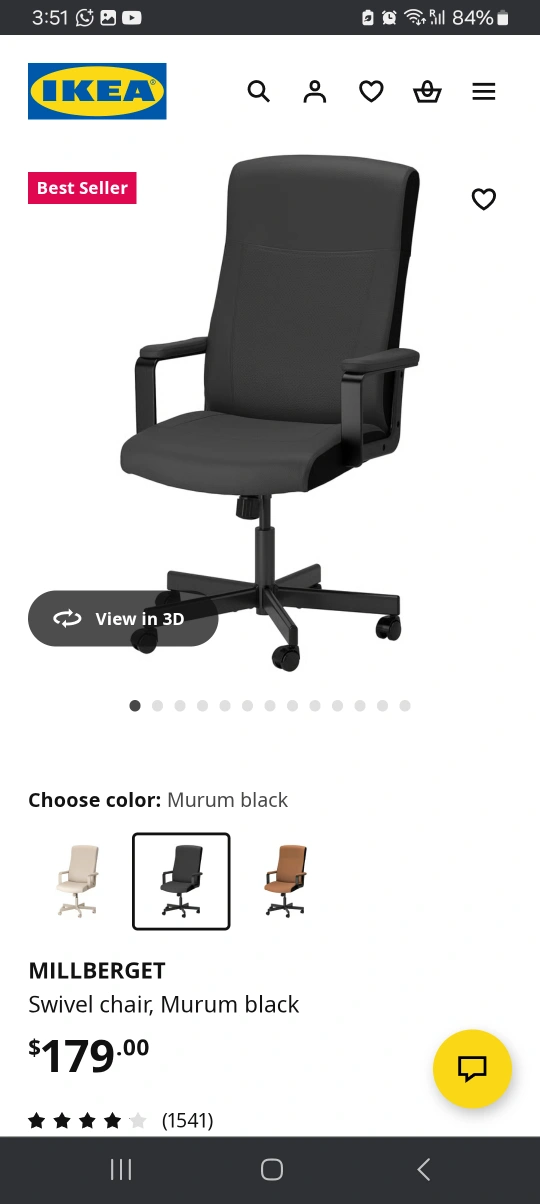 MILLBERGET swivel chair, Murum black - IKEA CA https://share.google/njgaMd2CE63t2b9TS