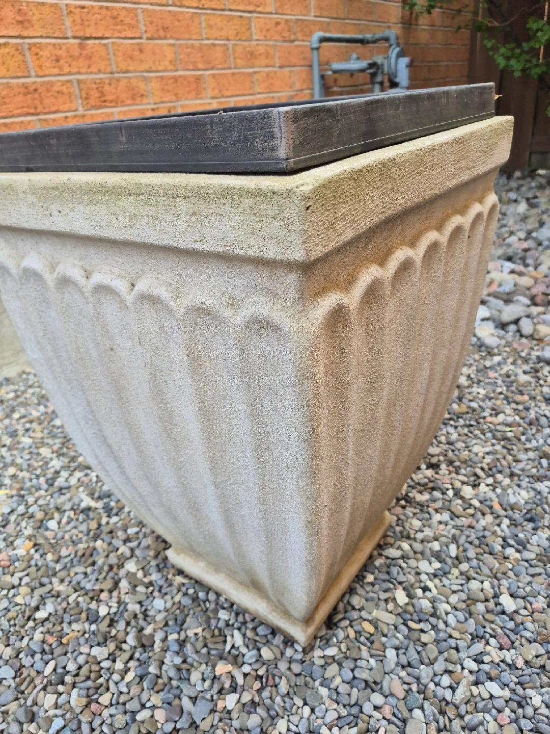I'm selling a large outdoor garden planter. It's in great condition and ready for your favourite plants! Perfect for adding some greenery to your patio or garden space. Amazing beautiful design. Classic and unique design. 24 inches hugh and 16 wide.