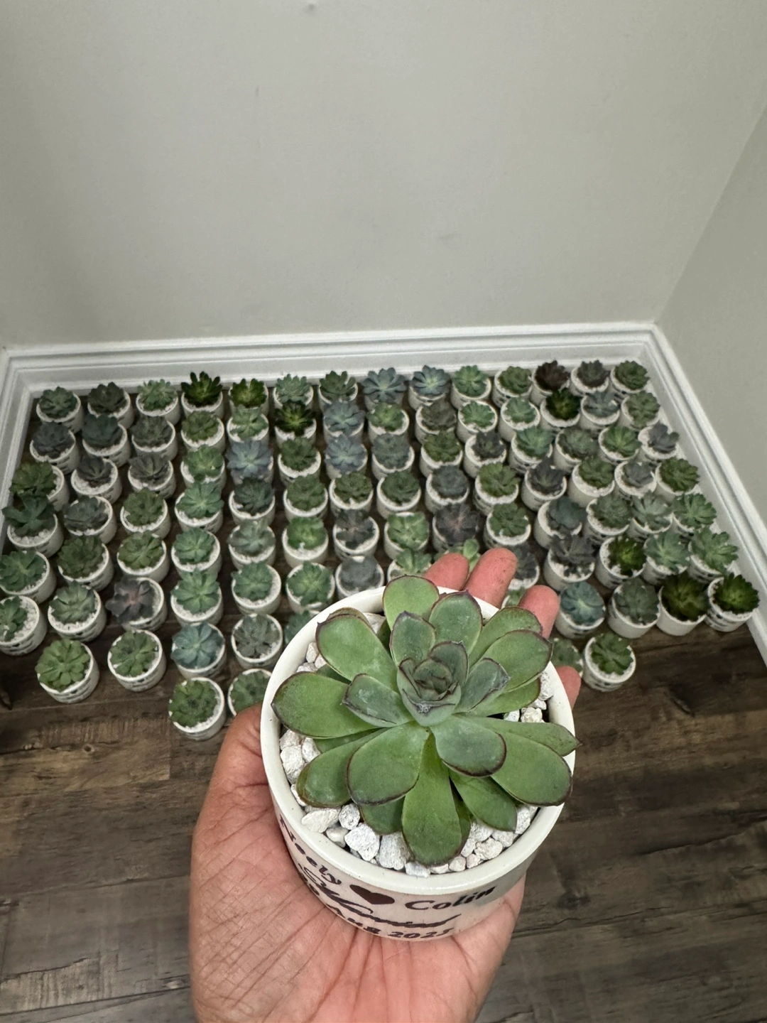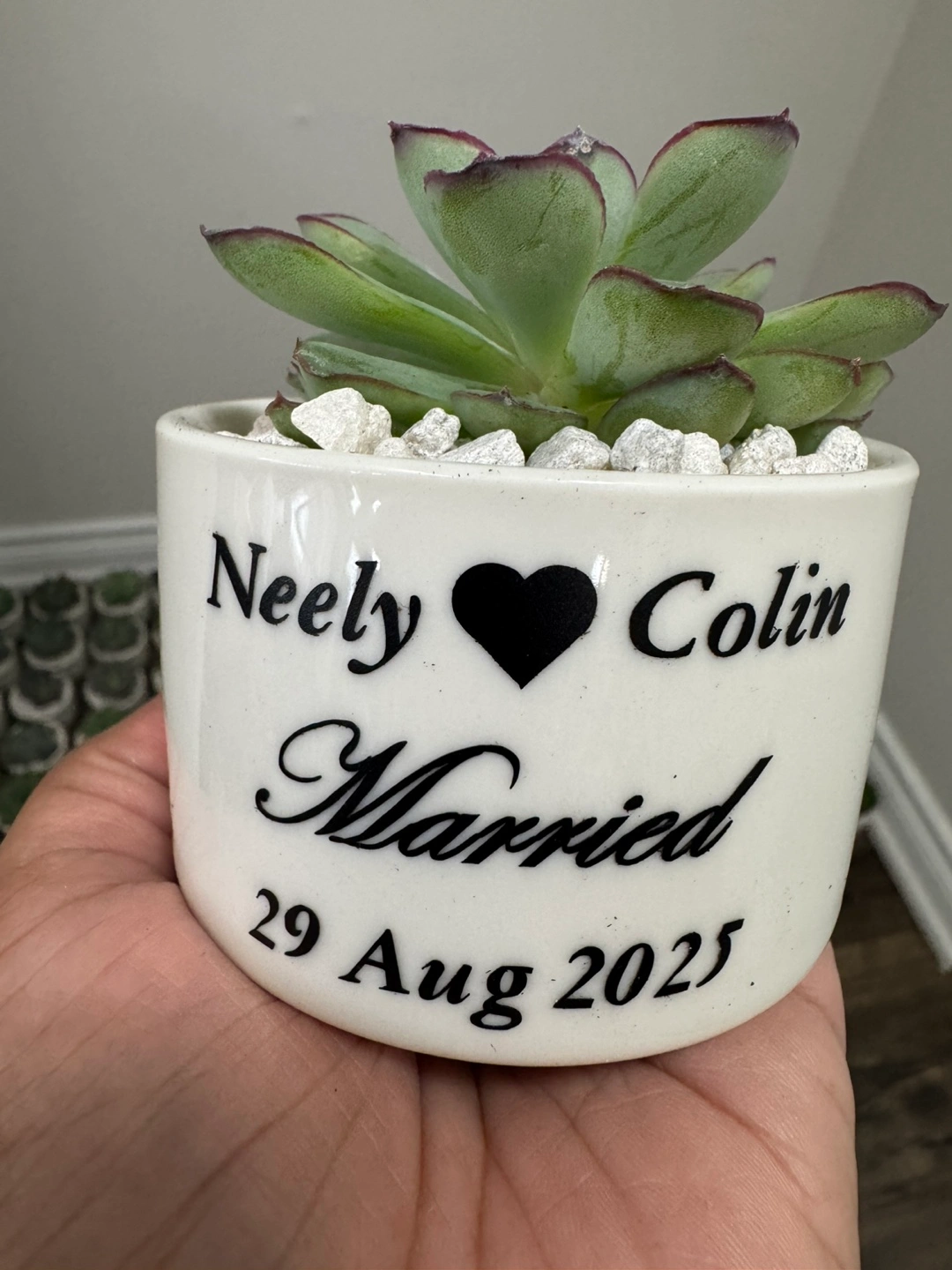 I am offering these adorable succulent party favors, perfect for adding a touch of green to any event. These charming little plants come in ceramic white pots, making them ideal as keepsakes for your guests.Please DM me if you are interested to know more