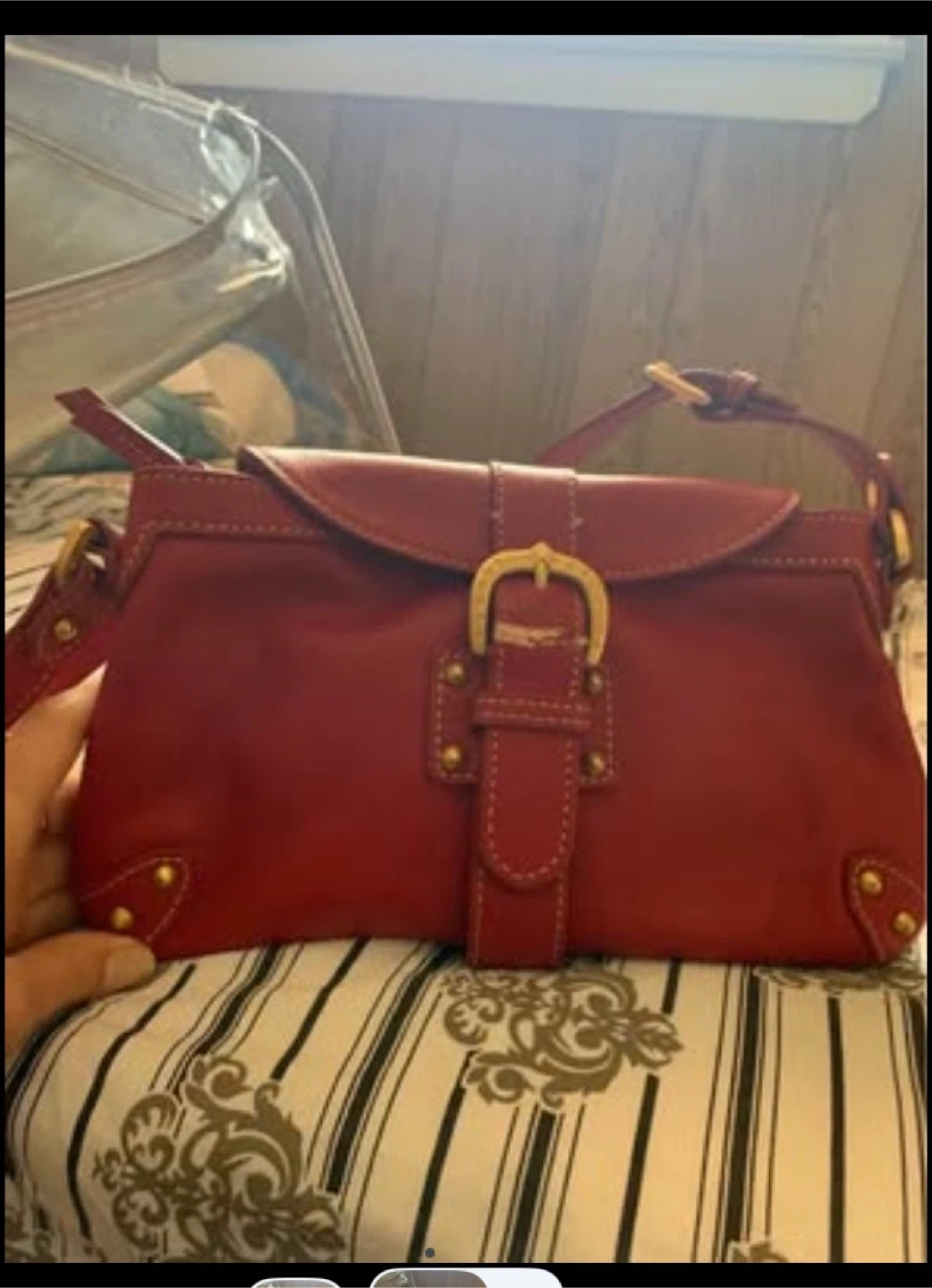 Selling a beautiful Dooney & Bourke red leather bag! It's in great condition and features a stylish buckle design. Perfect for adding a pop of color to your outfit!