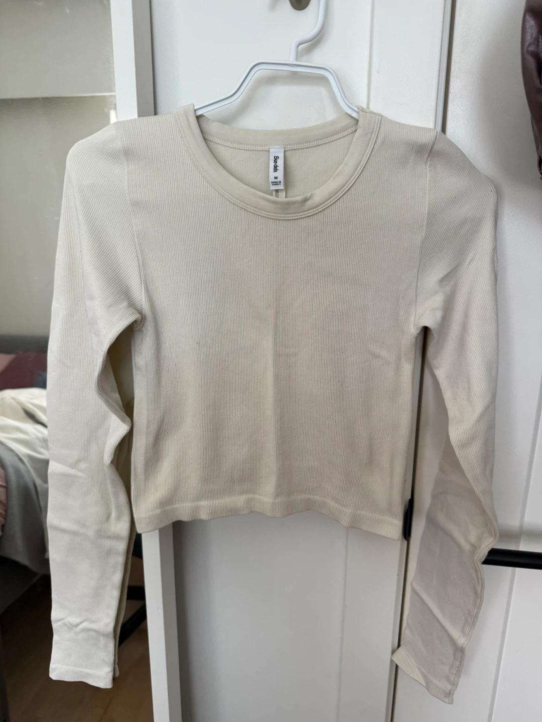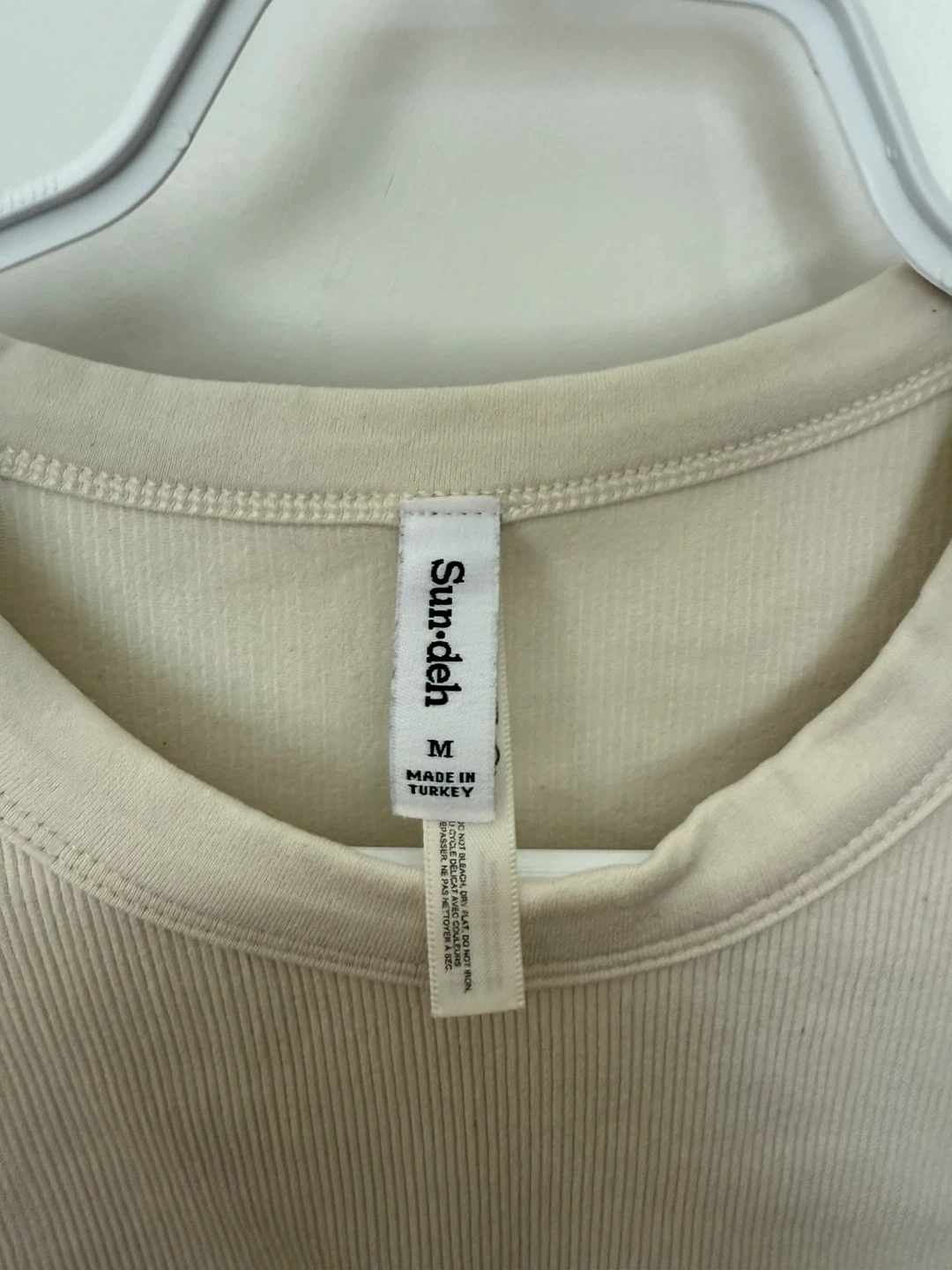 A ribbed long sleeve top by Sun-deh, perfect for layering or wearing on its own. It's a size medium and in great condition!