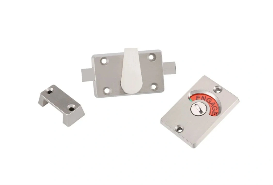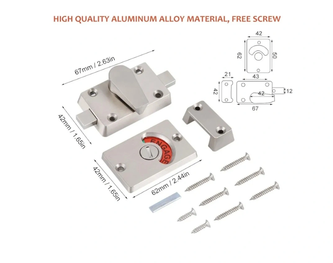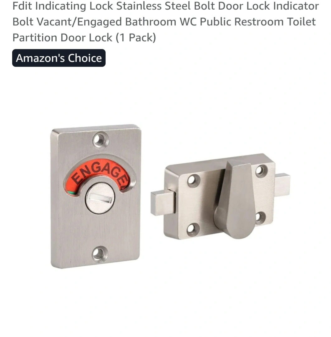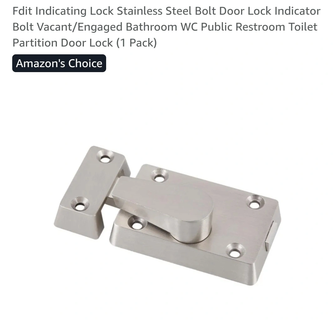 Selling a new Fdit indicating lock, made of stainless steel. It's a bolt door lock with a vacant/engaged indicator, perfect for bathrooms or public restrooms. Comes with all the necessary screws for installation