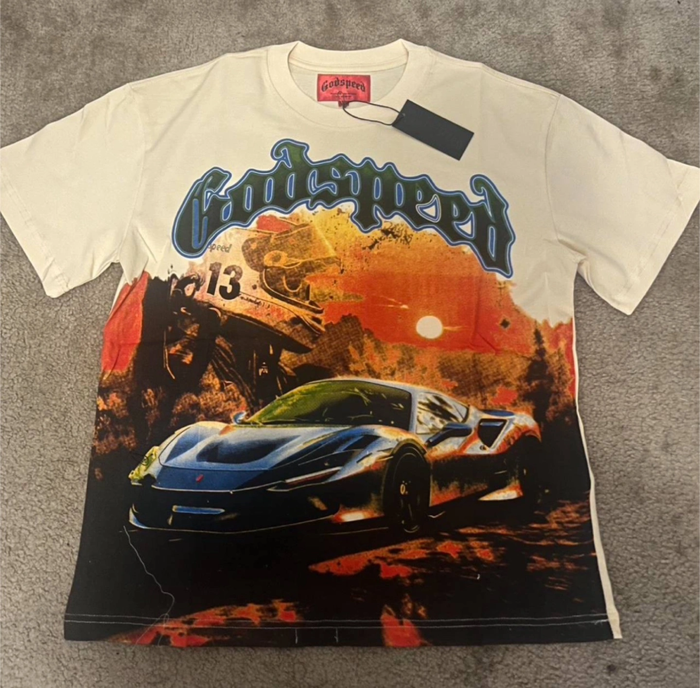 Godspeed Racing Car Graphic T-Shirt Out Of Many One White - All Sizes