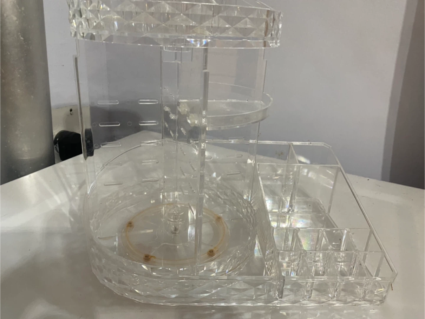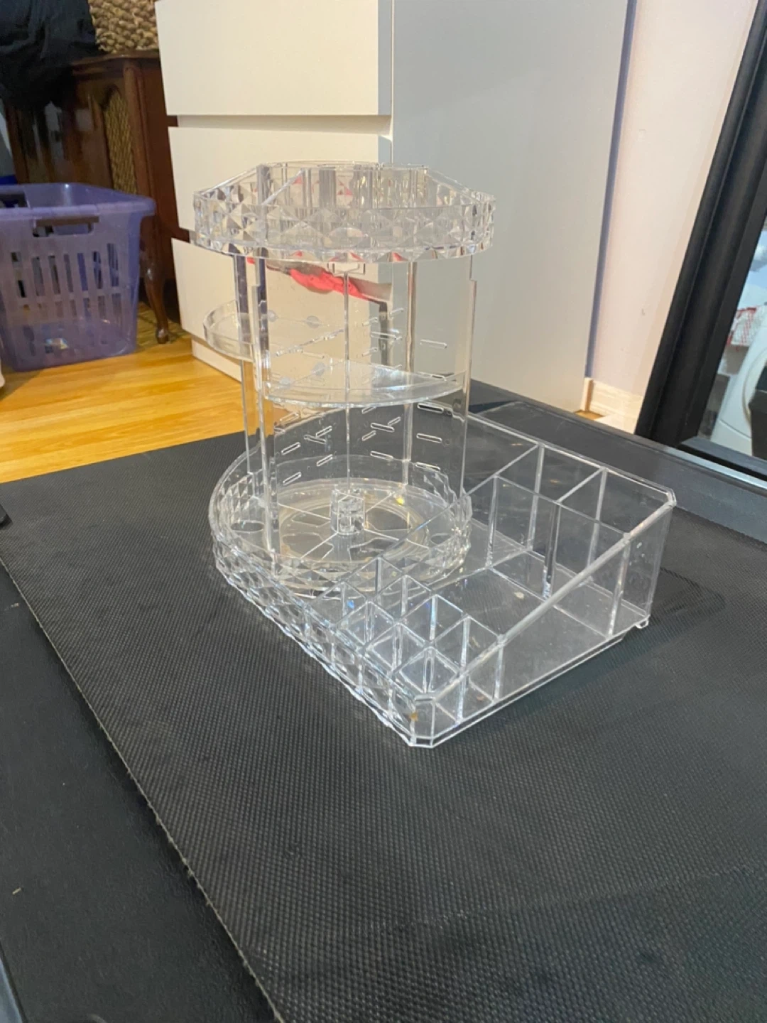 10Selling a clear, rotating makeup organizer! It's perfect for keeping all your cosmetics neat and tidy. It has a rotating base, making it easy to access all your items. Great for vanities or bathroom counters!