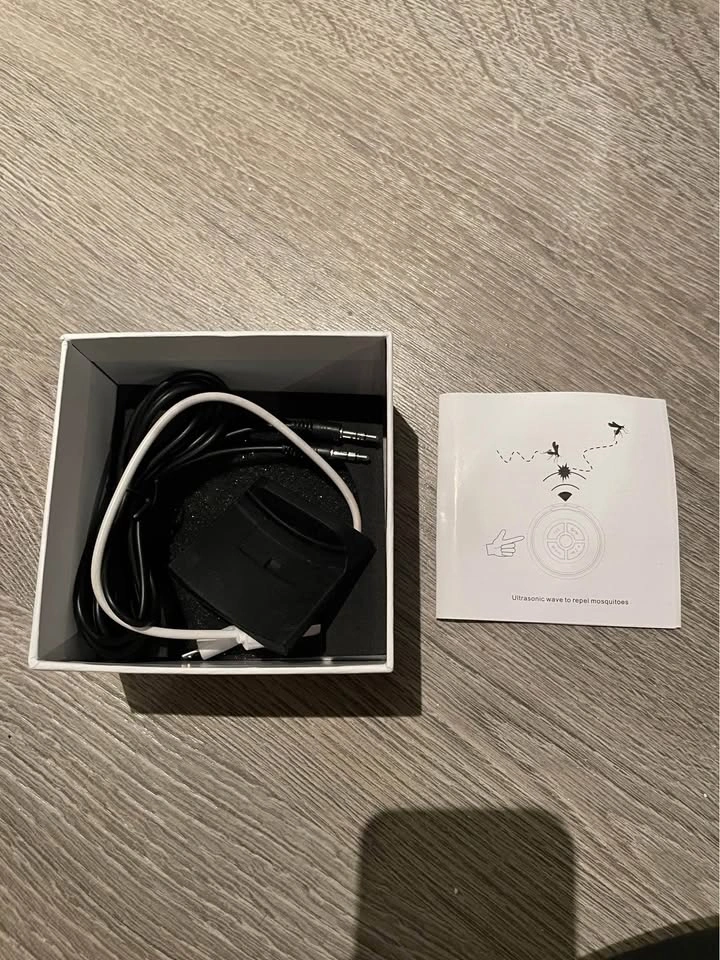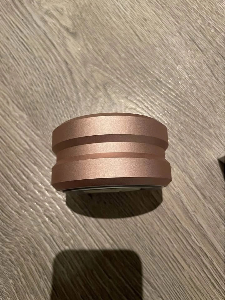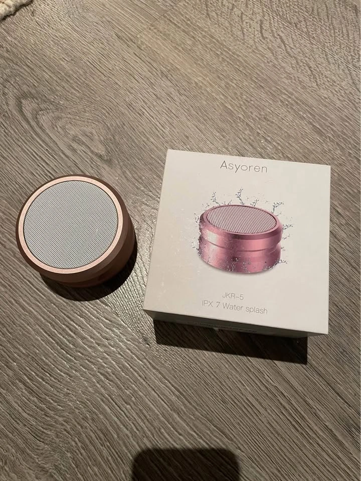 Rose gold bluetooth speaker with accompanying cord, vertical stand, manual, and box. It can also play a frequency to repel mosquitoes. Selling because I already have one.