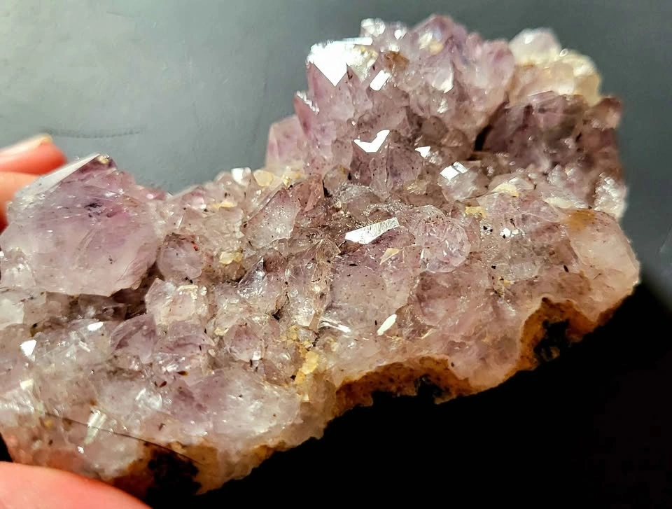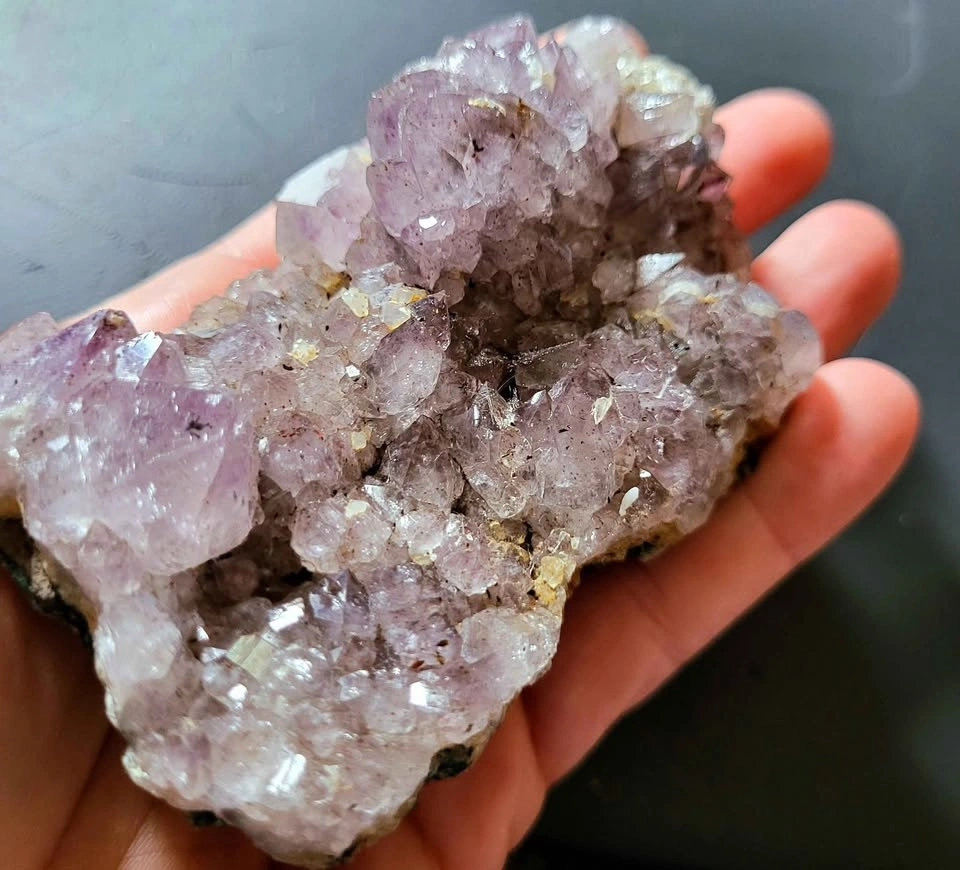 Pretty purple Amethyst specimen. This one is 5 inches by 4 inches. It has some really nice big chunky pieces on it.