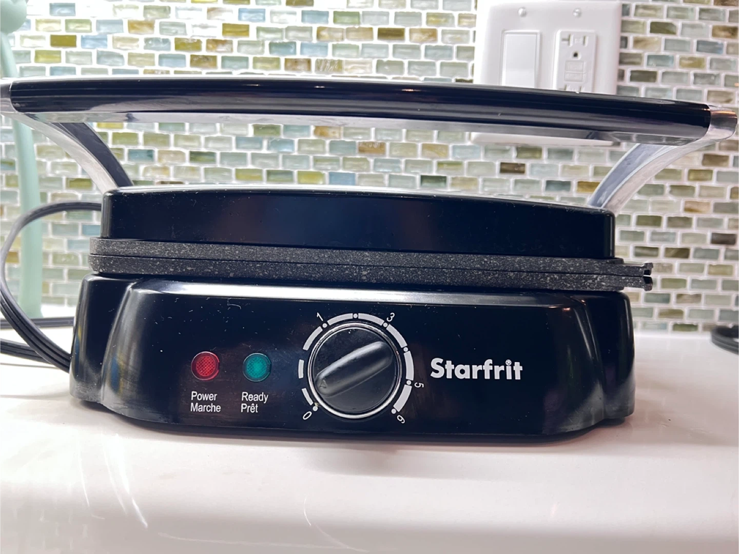 Selling a Starfrit electric grill. It's in great shape and ready for your next panini or grilled cheese! It features a power and ready light, and the grill plates are removable for easy cleaning. Only used about a dozen times.