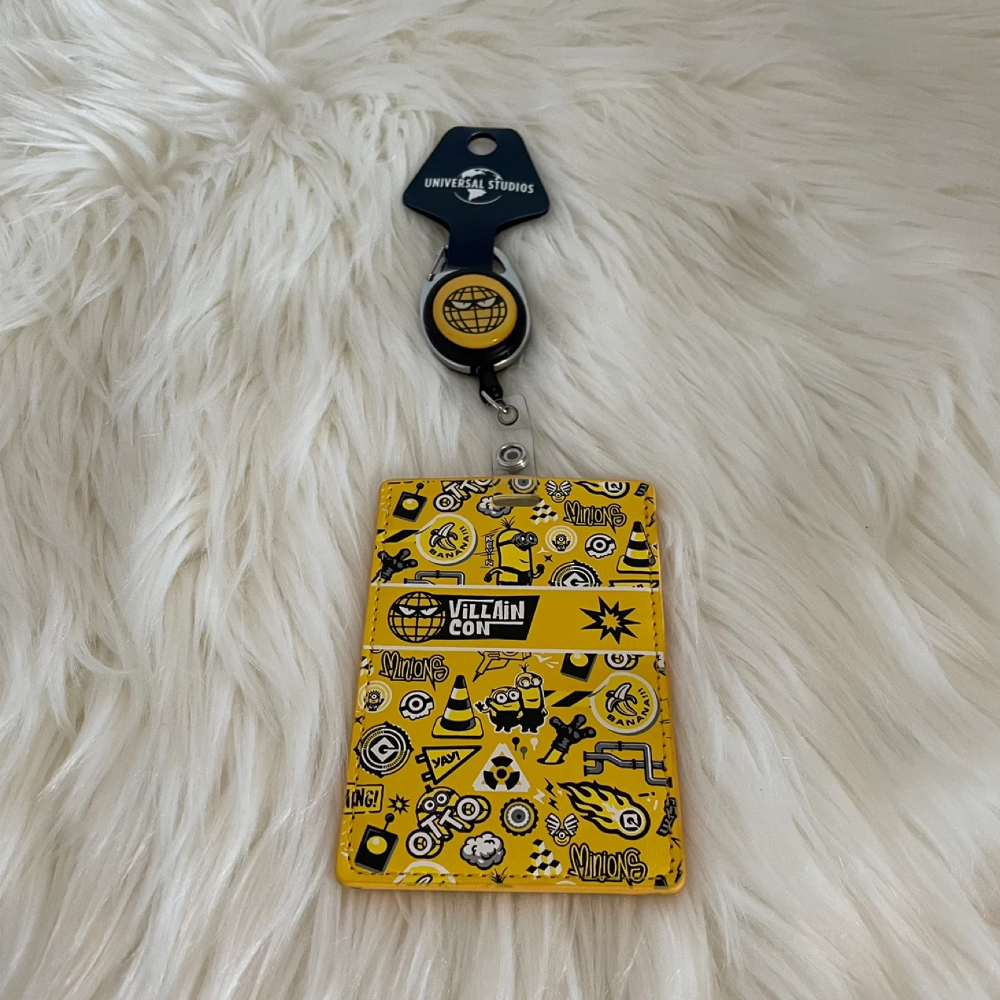 601Here's a fun Universal Studios lanyard featuring Despicable Me and the Minions! It has a retractable badge reel and a clear ID holder with a yellow border. The lanyard itself has a cool pattern with Minions, bananas, and other fun designs. Perfect for showing off your love for the movies! Pick up: Suntea on Kingsway Royal Oak skytrain station Metrotown Mall