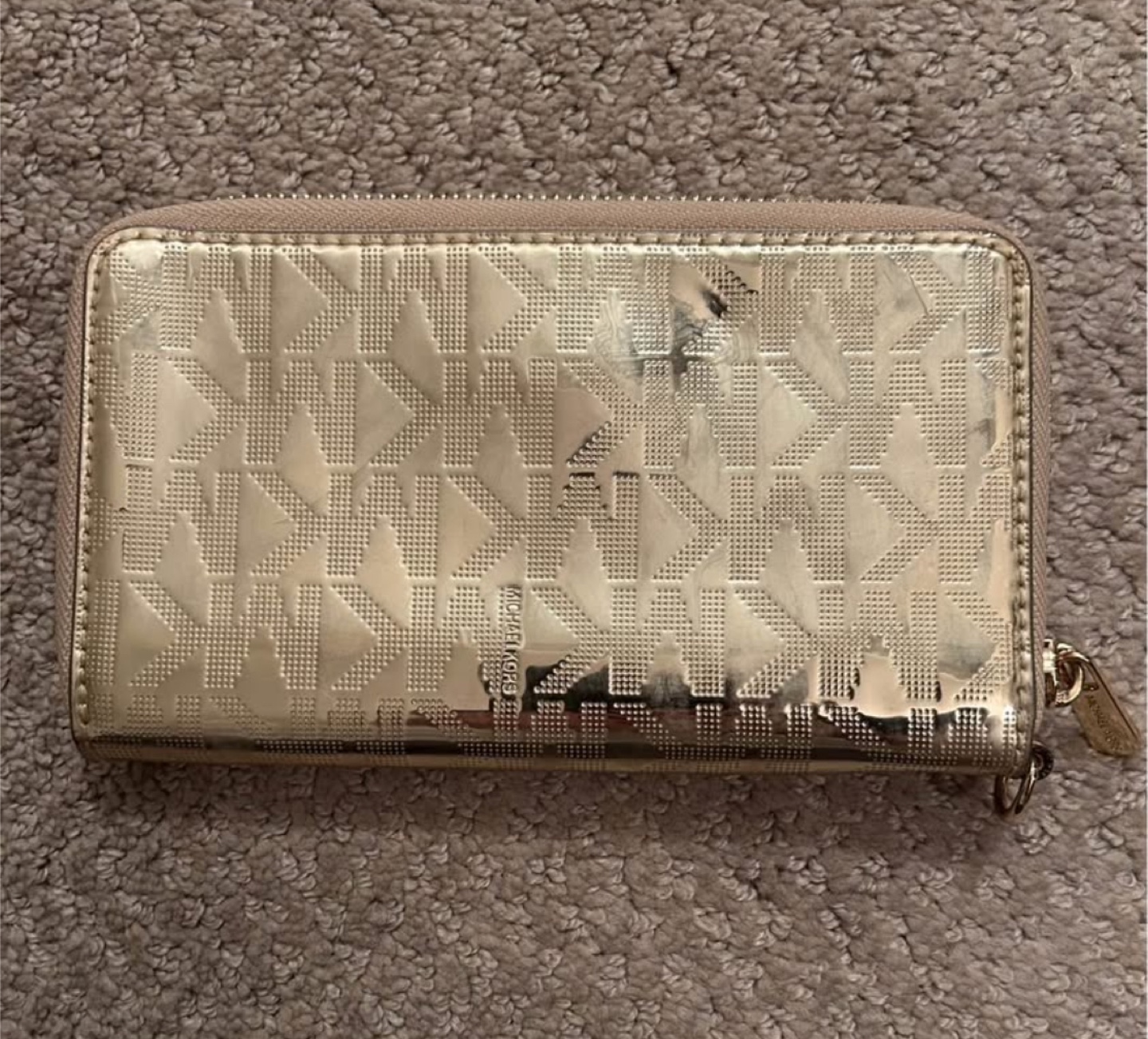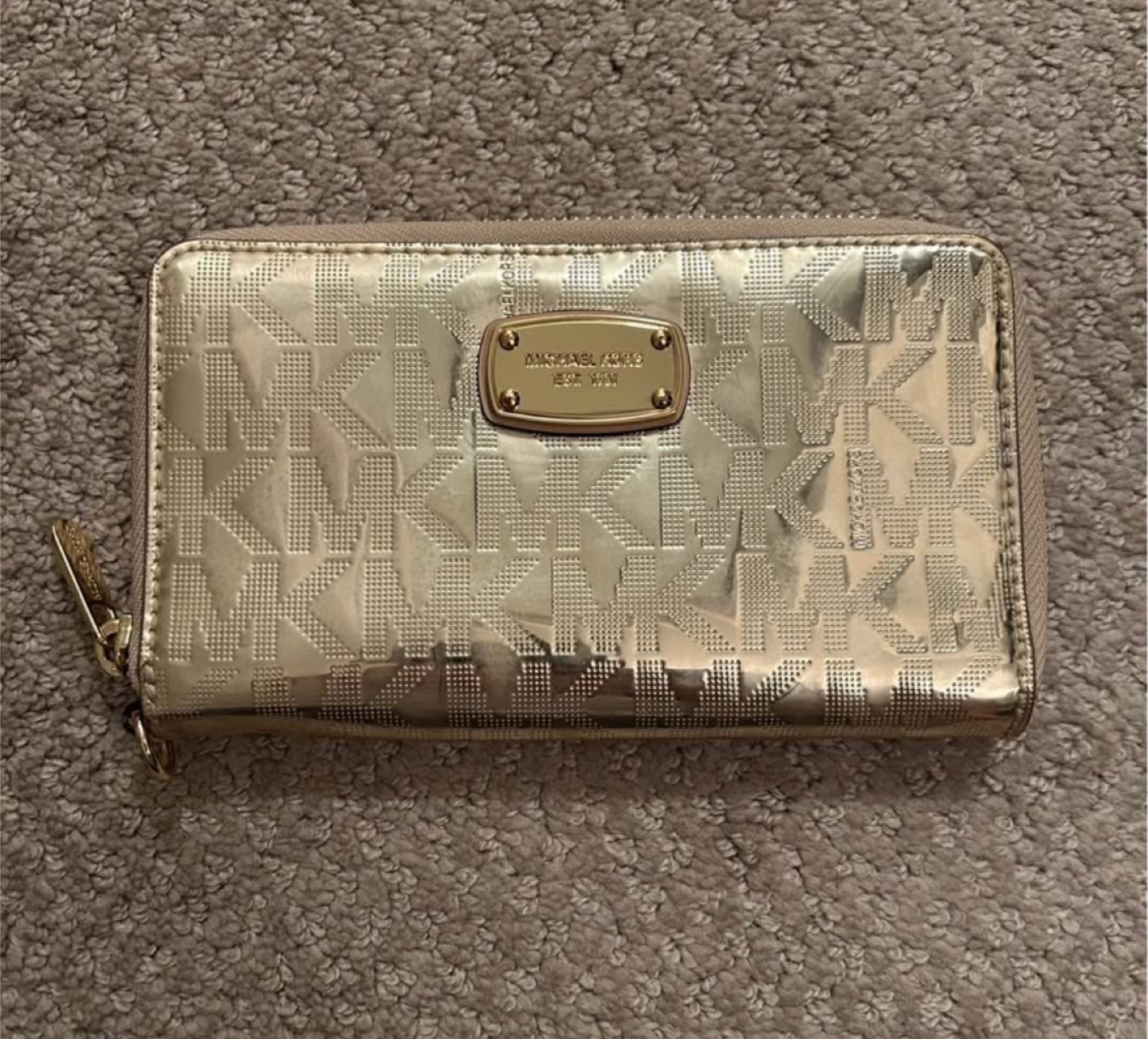 Selling a Michael Kors wallet in gold. It's in good condition and has lots of space for cards and cash! Perfect for everyday use.
