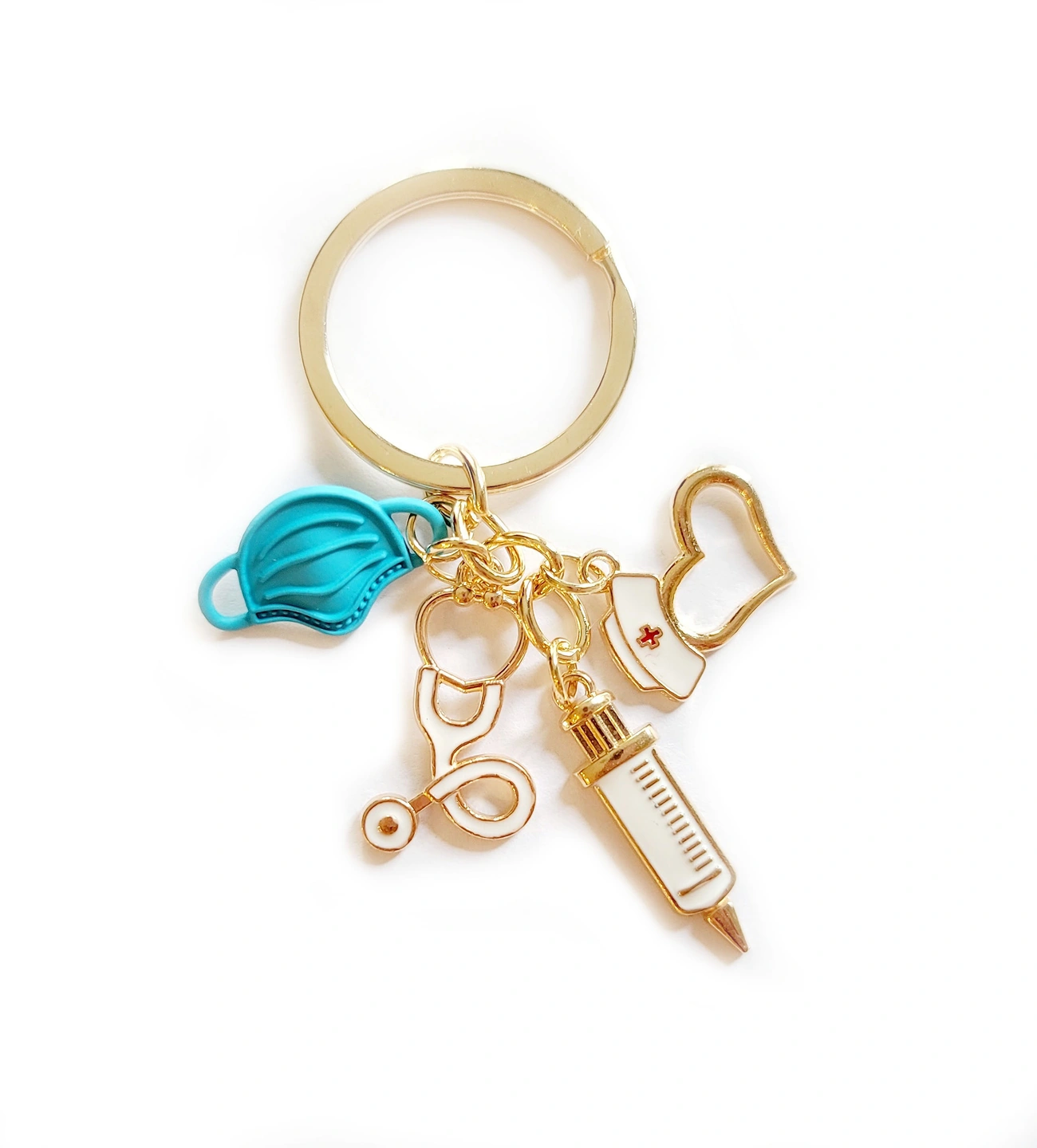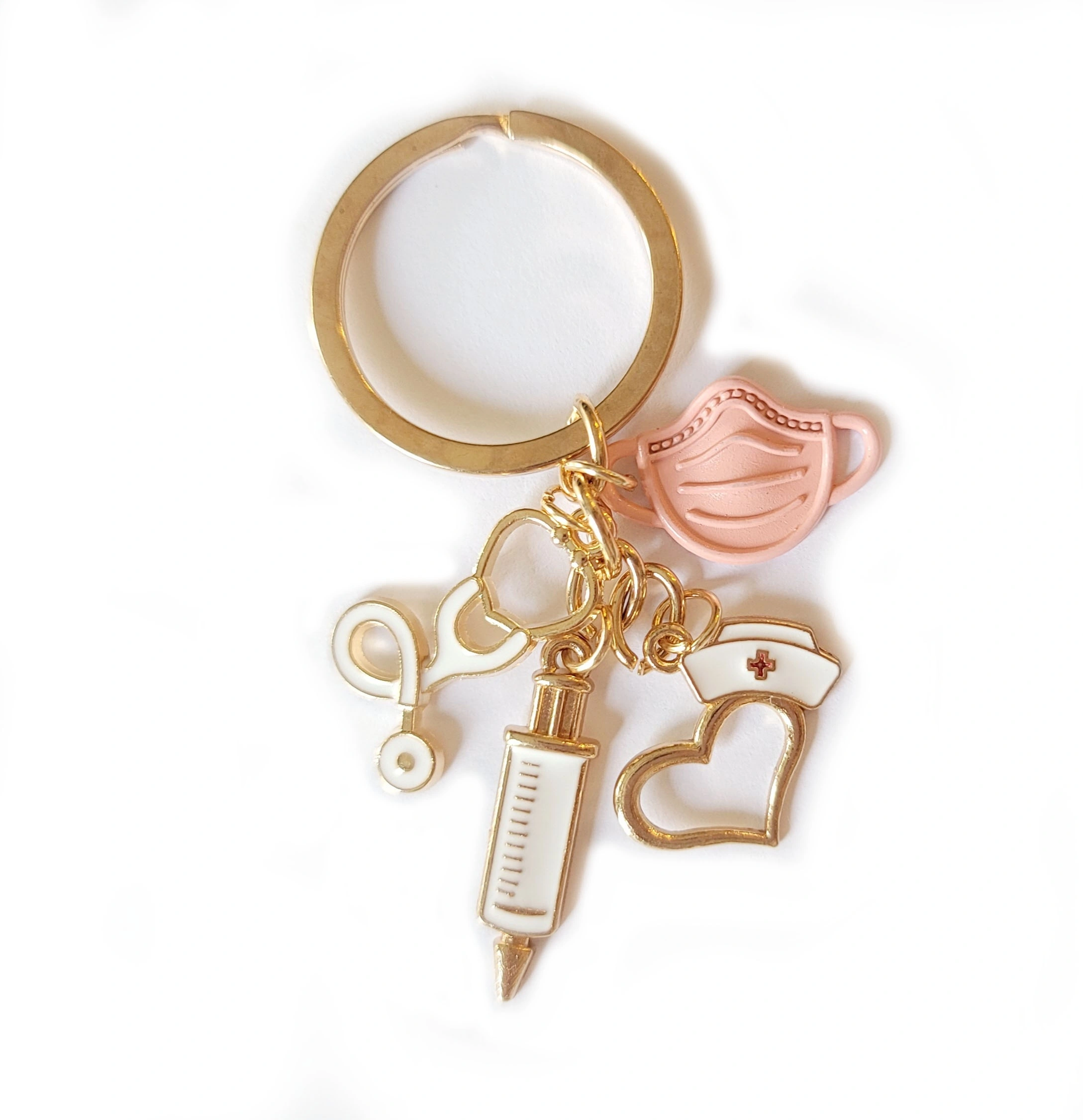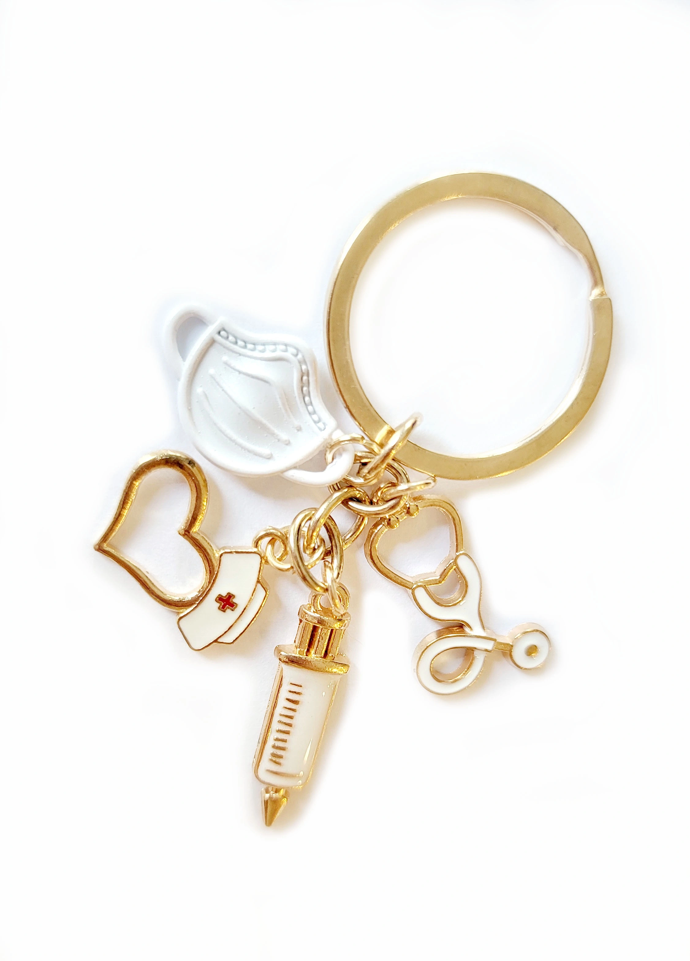 SOLD SEPARATELY. Choose from the following designs: A - with 4 charms, blue mask B - with 4 charms, white mask C - with 4 charms, pink mask D - with 3 charms, pink scrub top E - with 3 charms, white scrub top All new, never used, no scratches or damages