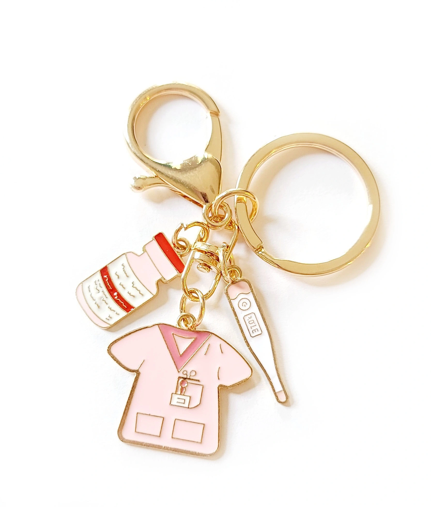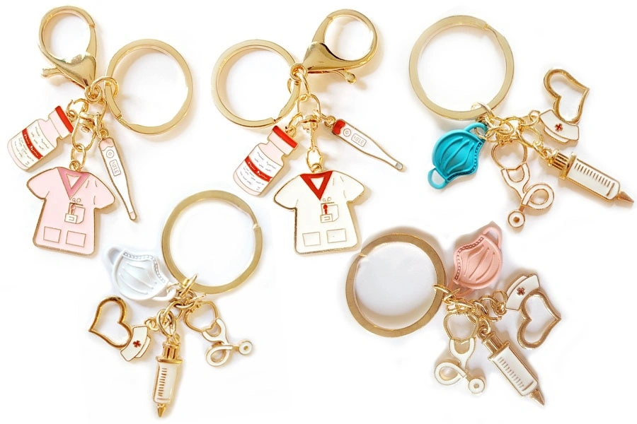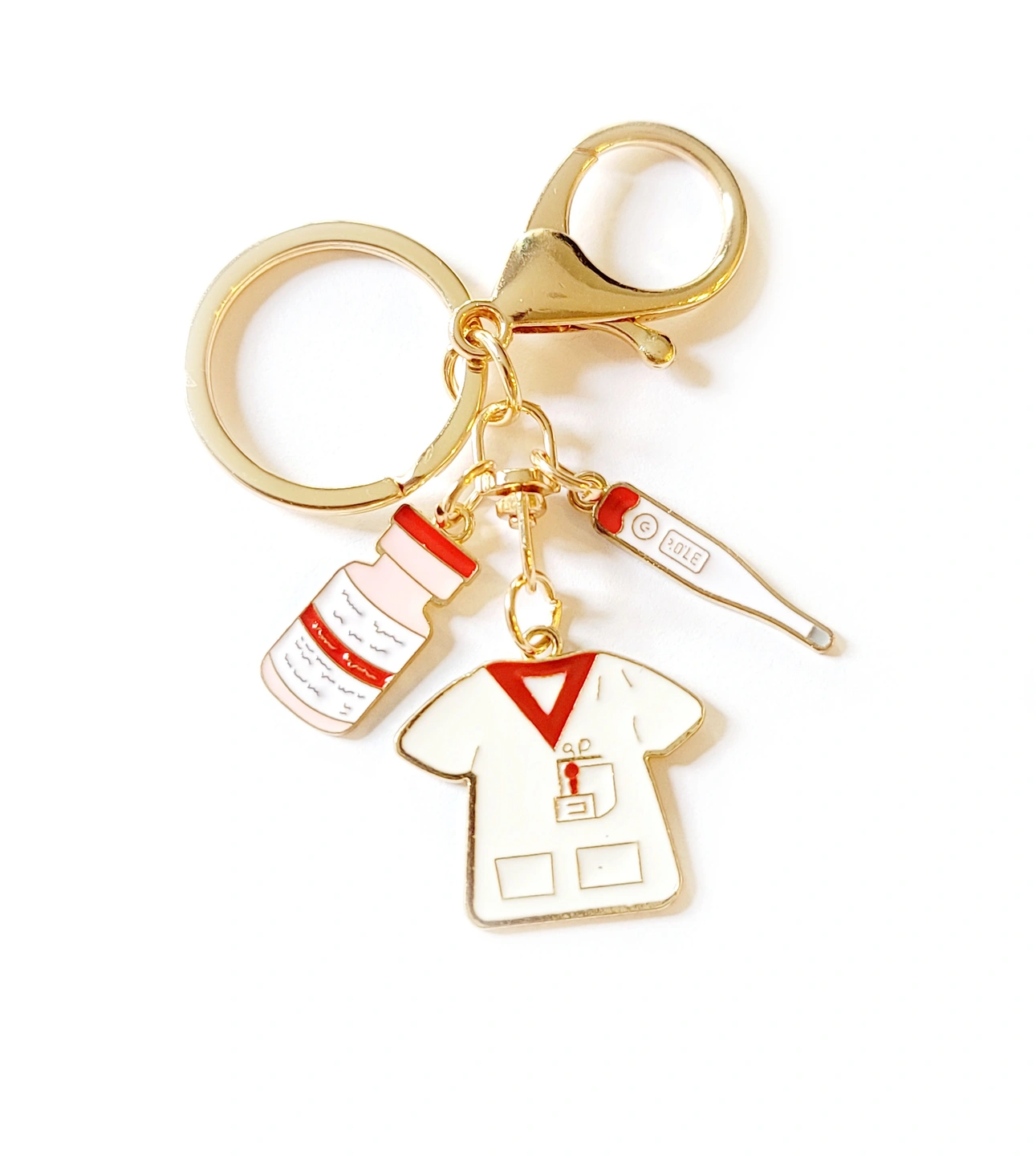 SOLD SEPARATELY. Choose from the following designs: A - with 4 charms, blue mask B - with 4 charms, white mask C - with 4 charms, pink mask D - with 3 charms, pink scrub top E - with 3 charms, white scrub top All new, never used, no scratches or damages
