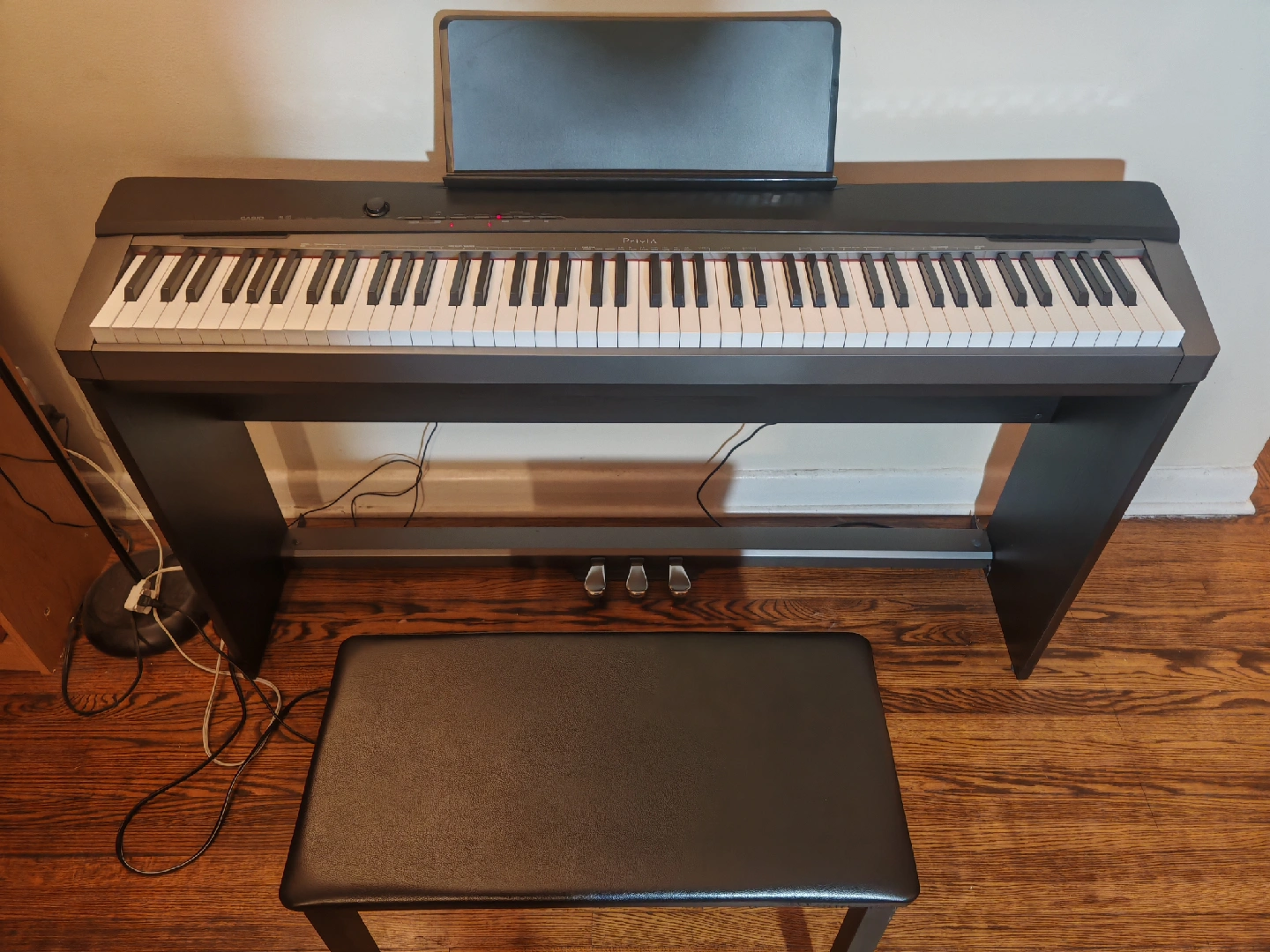 Selling a Casio Privia PX-130 digital piano. It comes with a bench, headphones, triple pedal, power adapter, and is in great condition. Perfect for beginners or experienced players alike!
