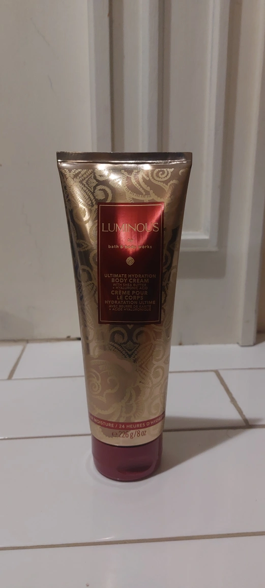 Selling a Bath & Body Works Luminous Ultimate Hydration Body Cream! contains shea butter and hyaluronic acid. It comes in a 226 g / 8 oz size,