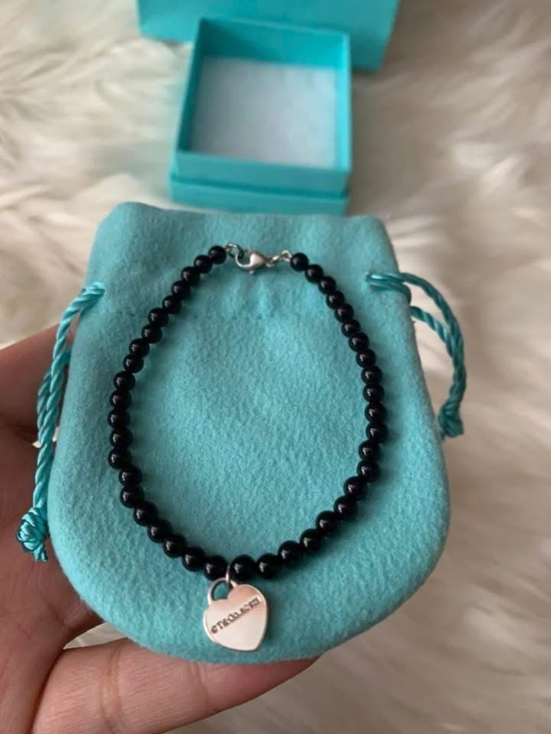 Authentic - Not being made anymore . Selling a Tiffany & Co. bracelet with black onyx beads and the classic heart tag. The tag is marked "T & Co. AG 925" and "Please Return to Tiffany & Co. New York 925". Comes with the original Tiffany & Co. pouch and box!