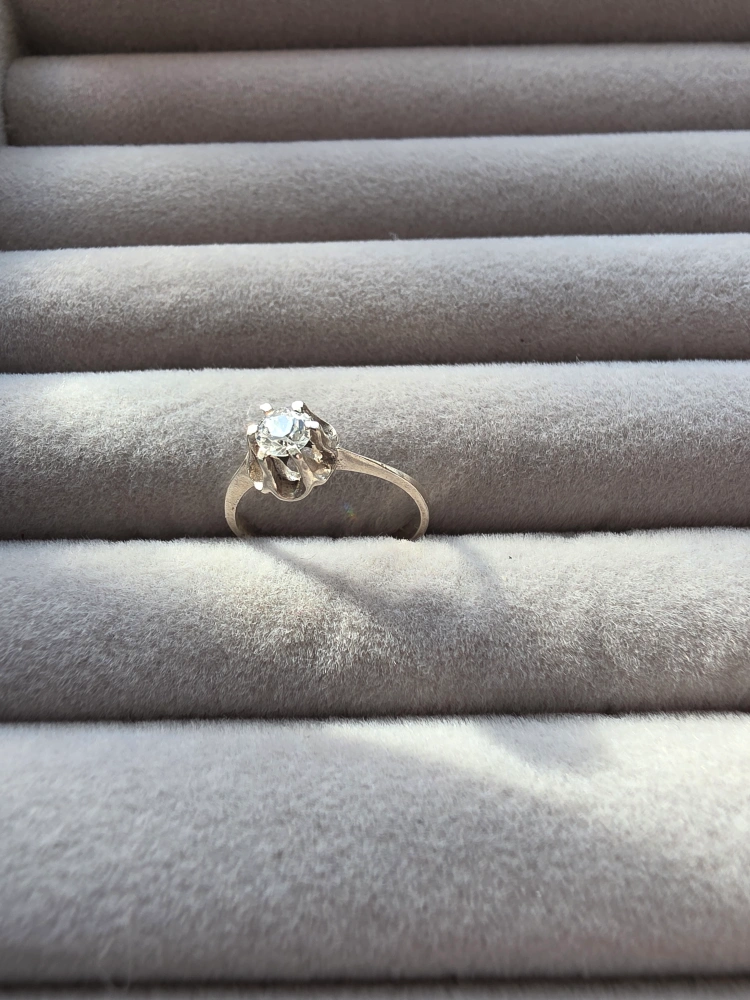 Add a touch of classic beauty to your style with this sterling silver ring, featuring a brilliant-cut zirconia stone delicately set in a vintage-inspired floral setting. πΈ
