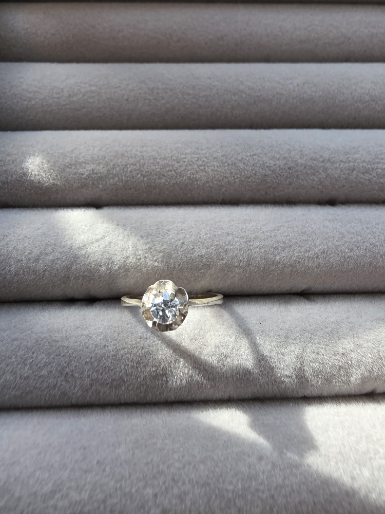 Add a touch of classic beauty to your style with this sterling silver ring, featuring a brilliant-cut zirconia stone delicately set in a vintage-inspired floral setting. πΈ