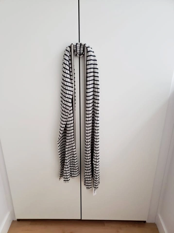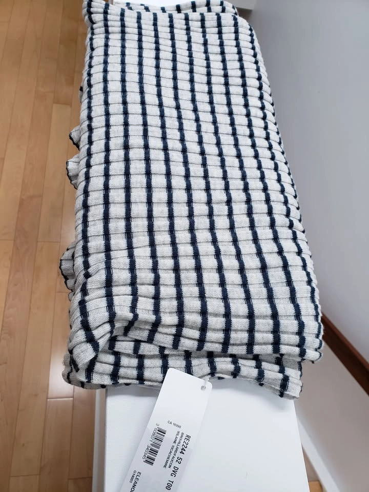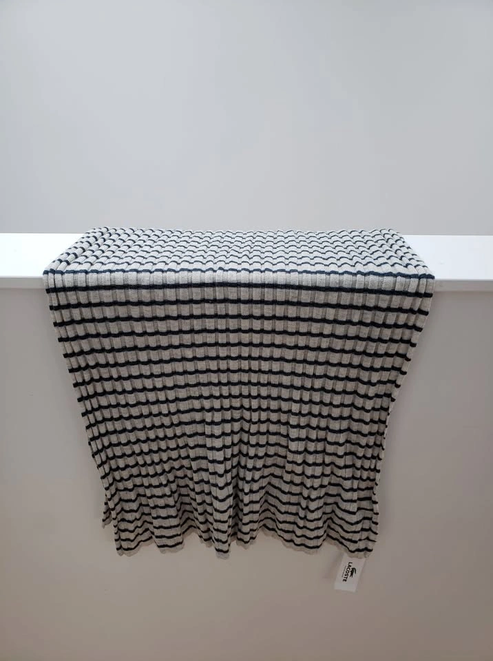 Selling a brand new with tags Lacoste wrap scarf. Scarf is light grey & blue stripped. Made of 90% wool & 10% cashmere. Comes from a smoke & pet free home.