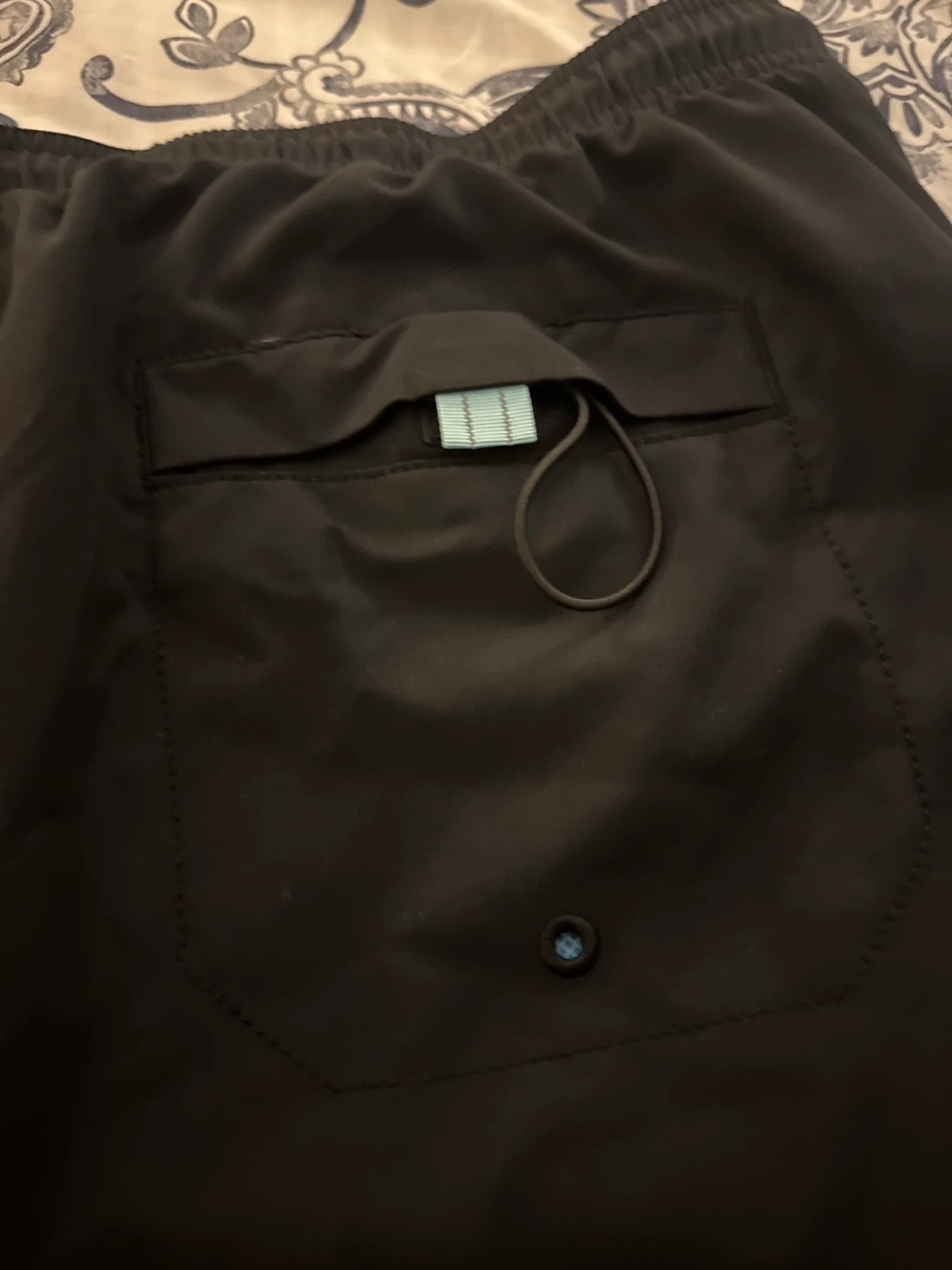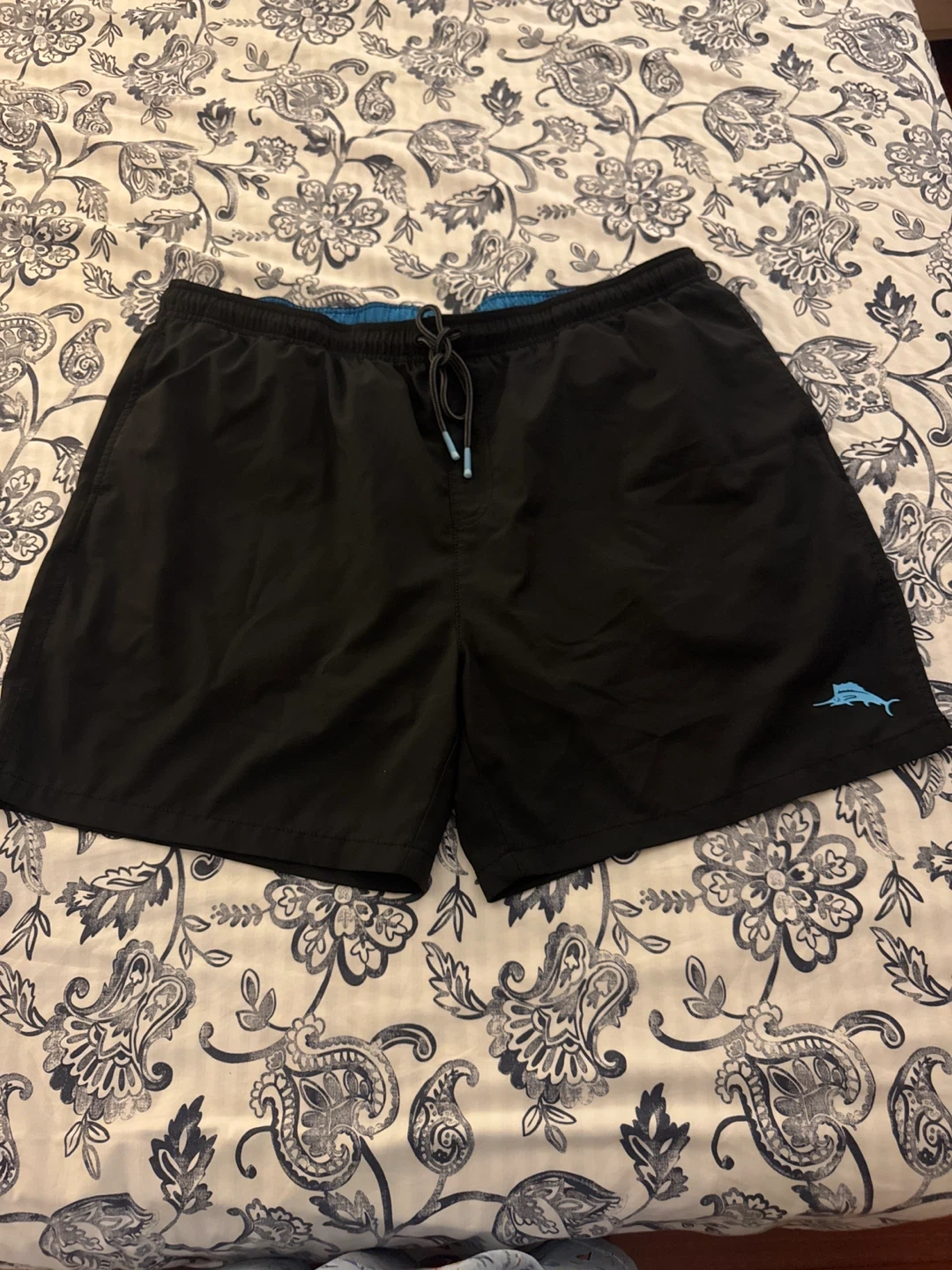 Selling a pair of Tommy Bahama swim trunks in black. They're in great shape and ready for the pool or beach! The shorts feature a drawstring waist and a back pocket.