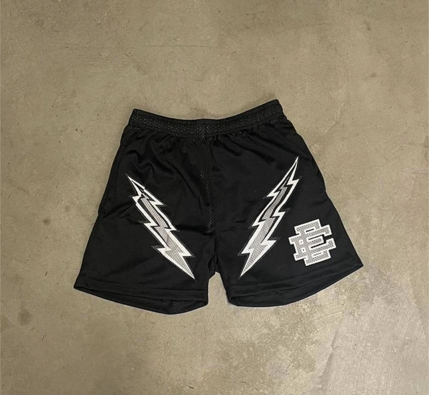 Eric Emanuel Black Lightning Bolt Mesh Shorts