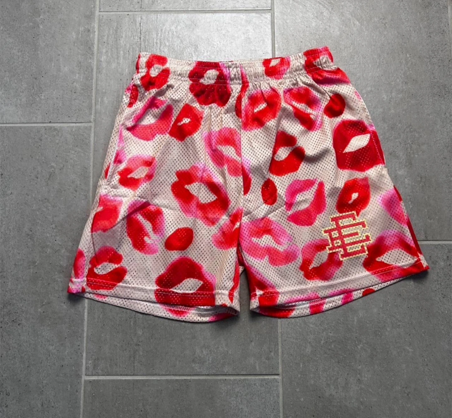 Eric Emanuel Kiss Print Mesh Shorts Red Pink Lips