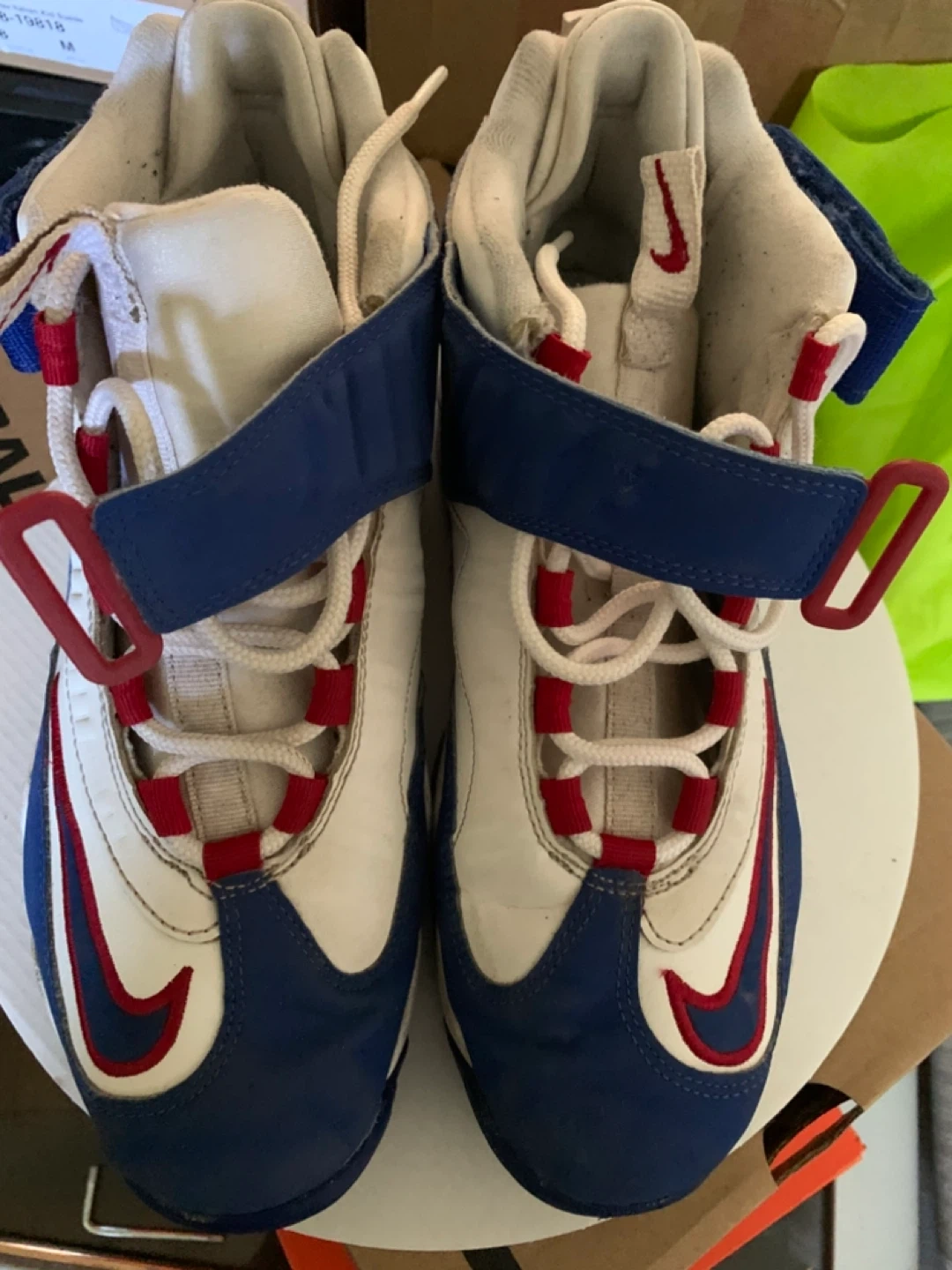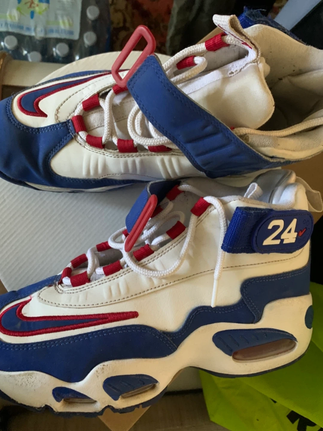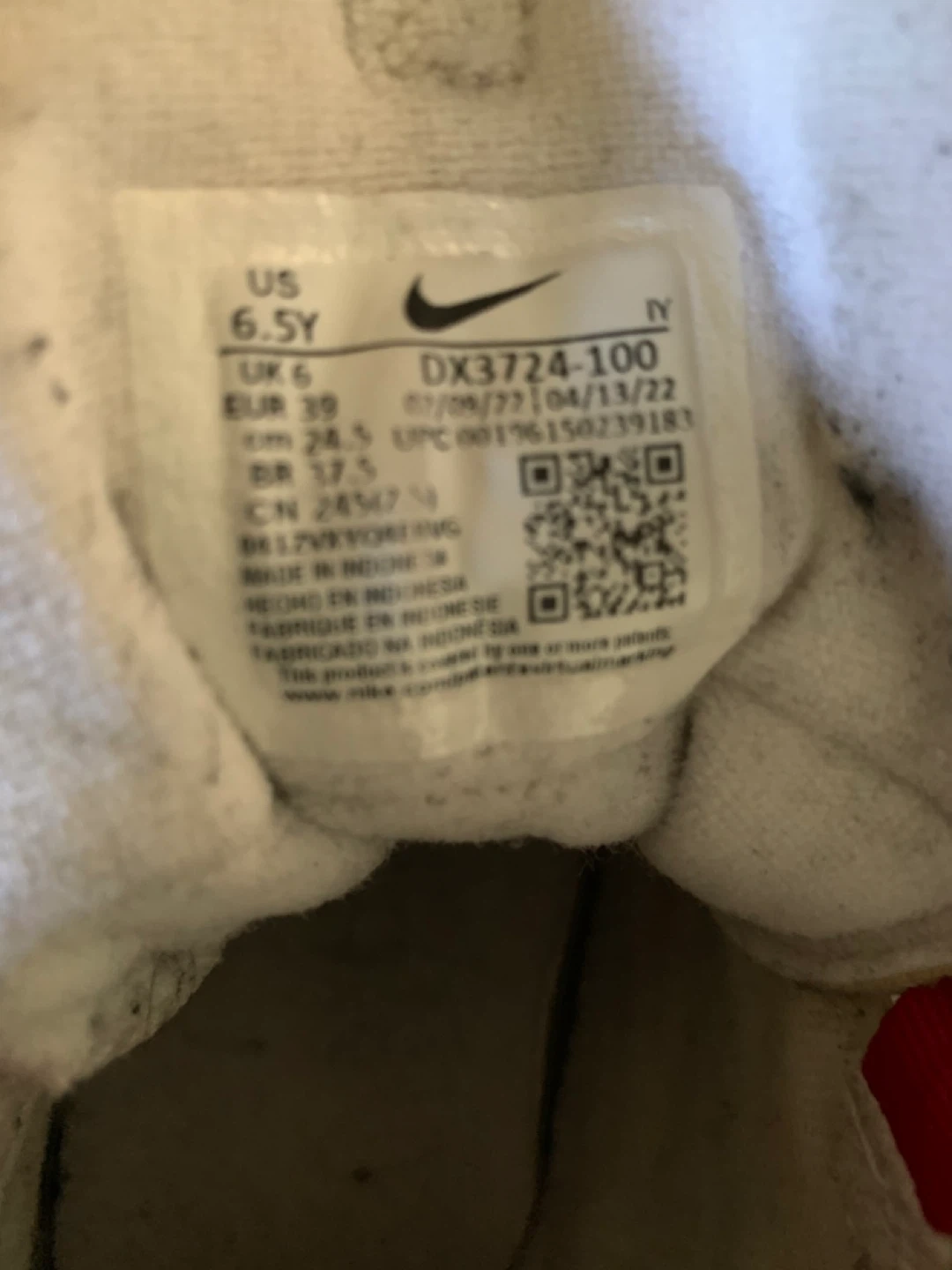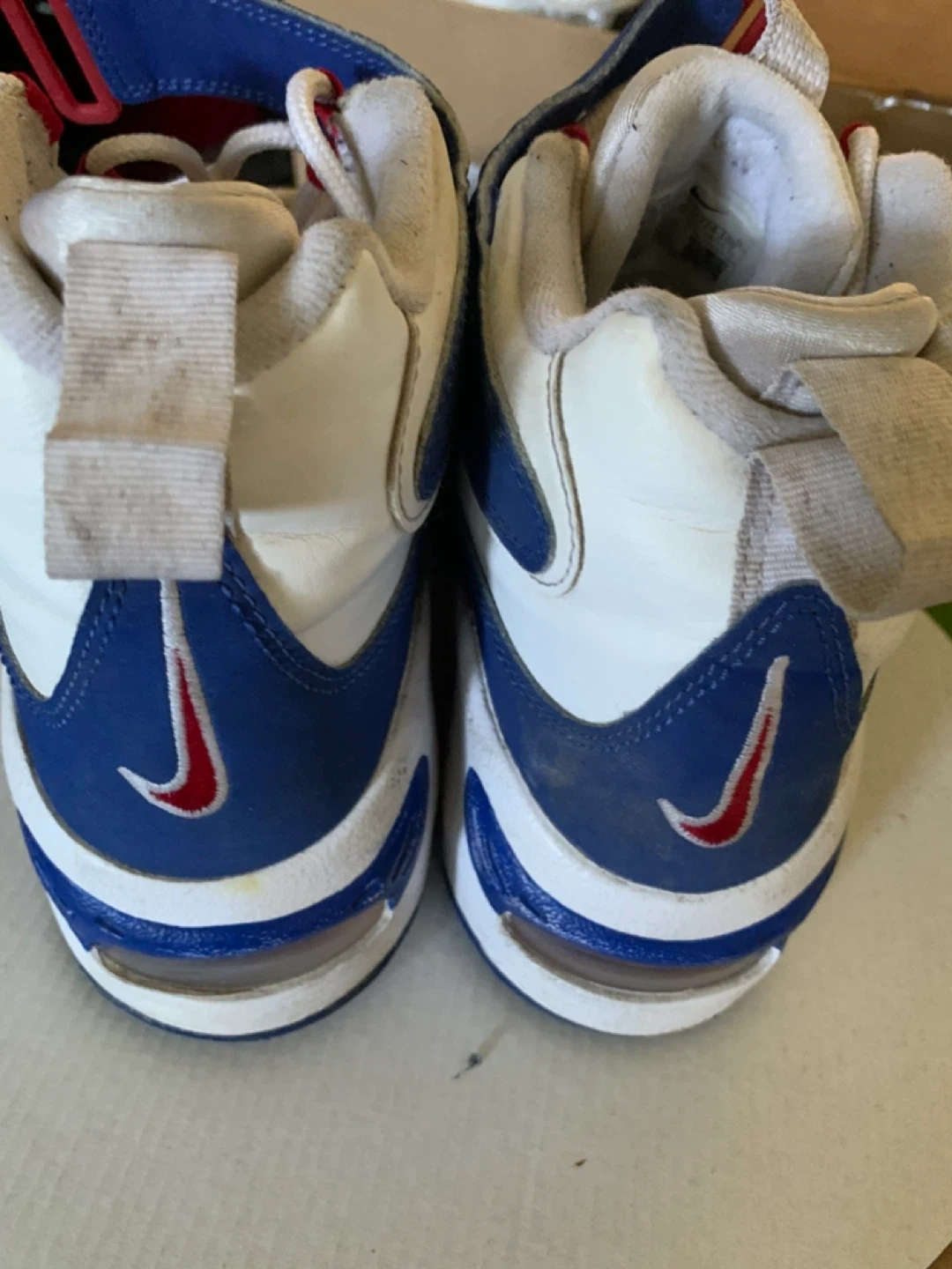 Selling a pair of Nike Air Max Uptempo '95 in size US 6.5Y. These shoes feature a white, blue, and red colourway. The style code is DX3724-100. They show some signs of wear, but still have lots of life left!