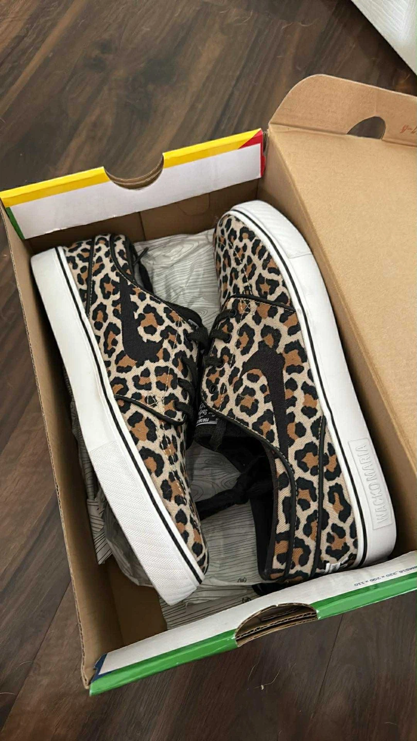 46Selling a pair of Nike SB Janoski Canvas OG QS sneakers in a cool leopard print! They are size 10.5 US and come with the original box. These shoes are in excellent condition and ready for a new home. They feature a stylish design and comfortable fit, perfect for skateboarding or casual wear
