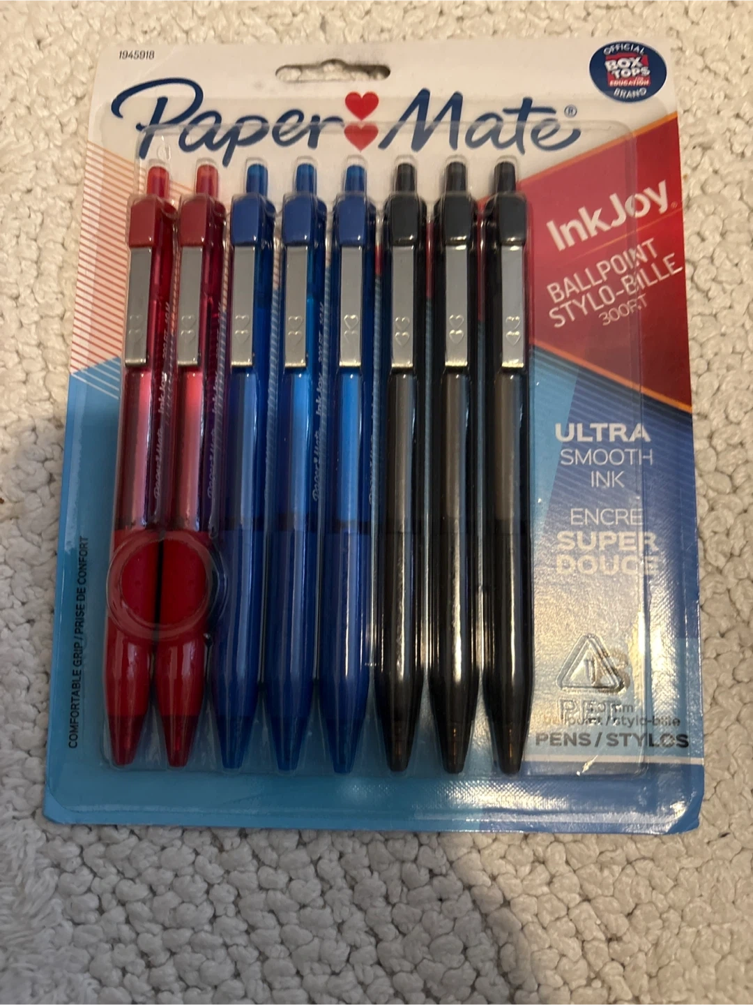 Selling a pack of Paper Mate InkJoy ballpoint pens! This pack includes red, blue, and black pens with ultra-smooth ink. Perfect for everyday use at home, school, or the office