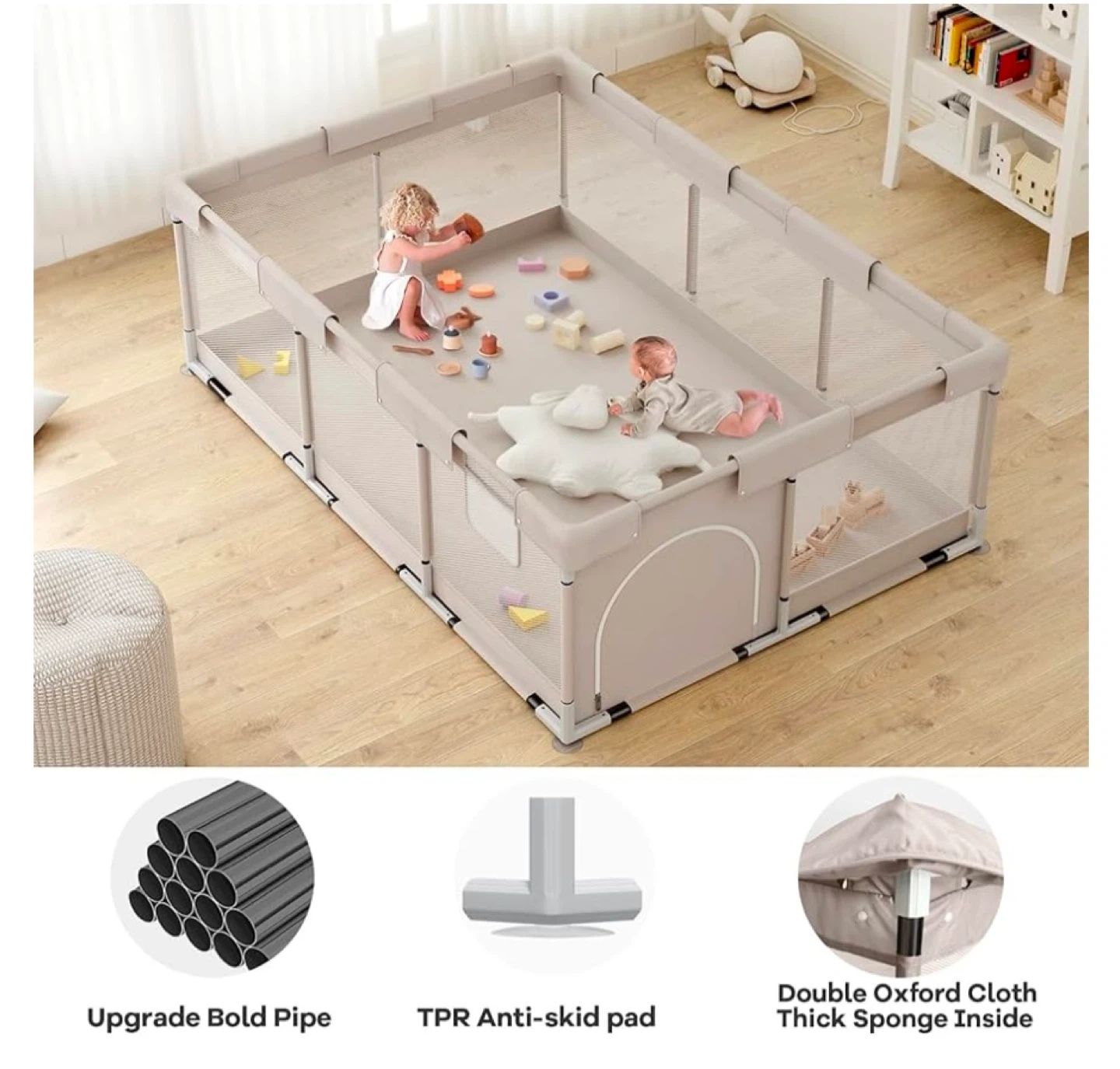 This safe activity centre is perfect for little ones learning to crawl, walk, and play! It measures approximately 47 x 70.86 x 26 inches. It's designed with a zipper opening for interactivity and assisted learning to walk. A great helper for mom and dad!