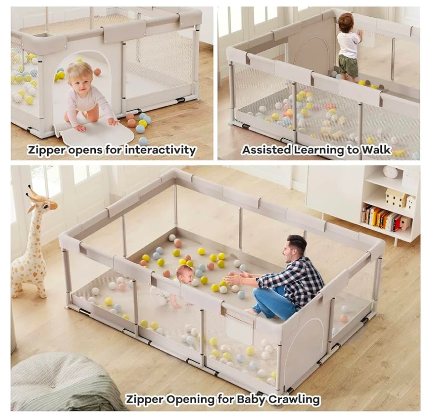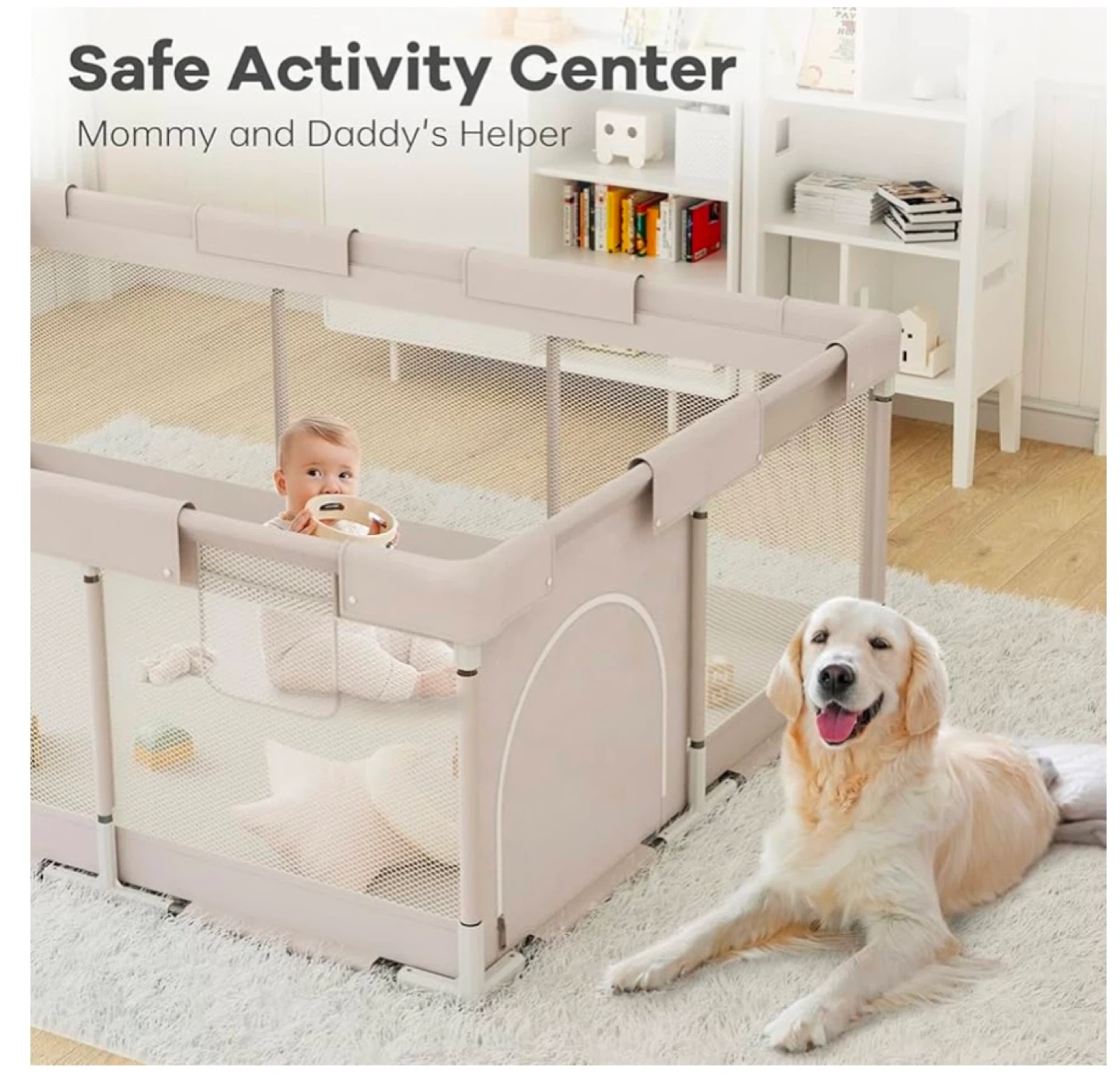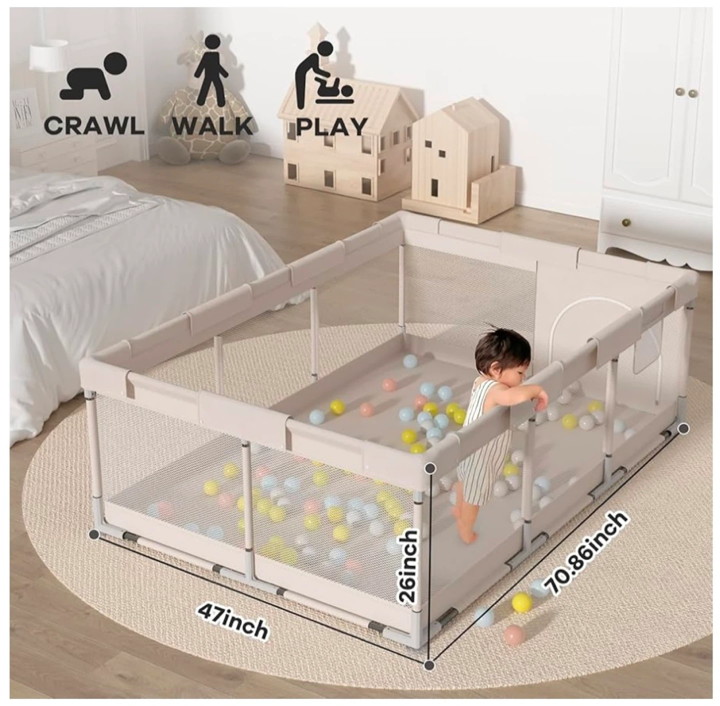 This safe activity centre is perfect for little ones learning to crawl, walk, and play! It measures approximately 47 x 70.86 x 26 inches. It's designed with a zipper opening for interactivity and assisted learning to walk. A great helper for mom and dad!