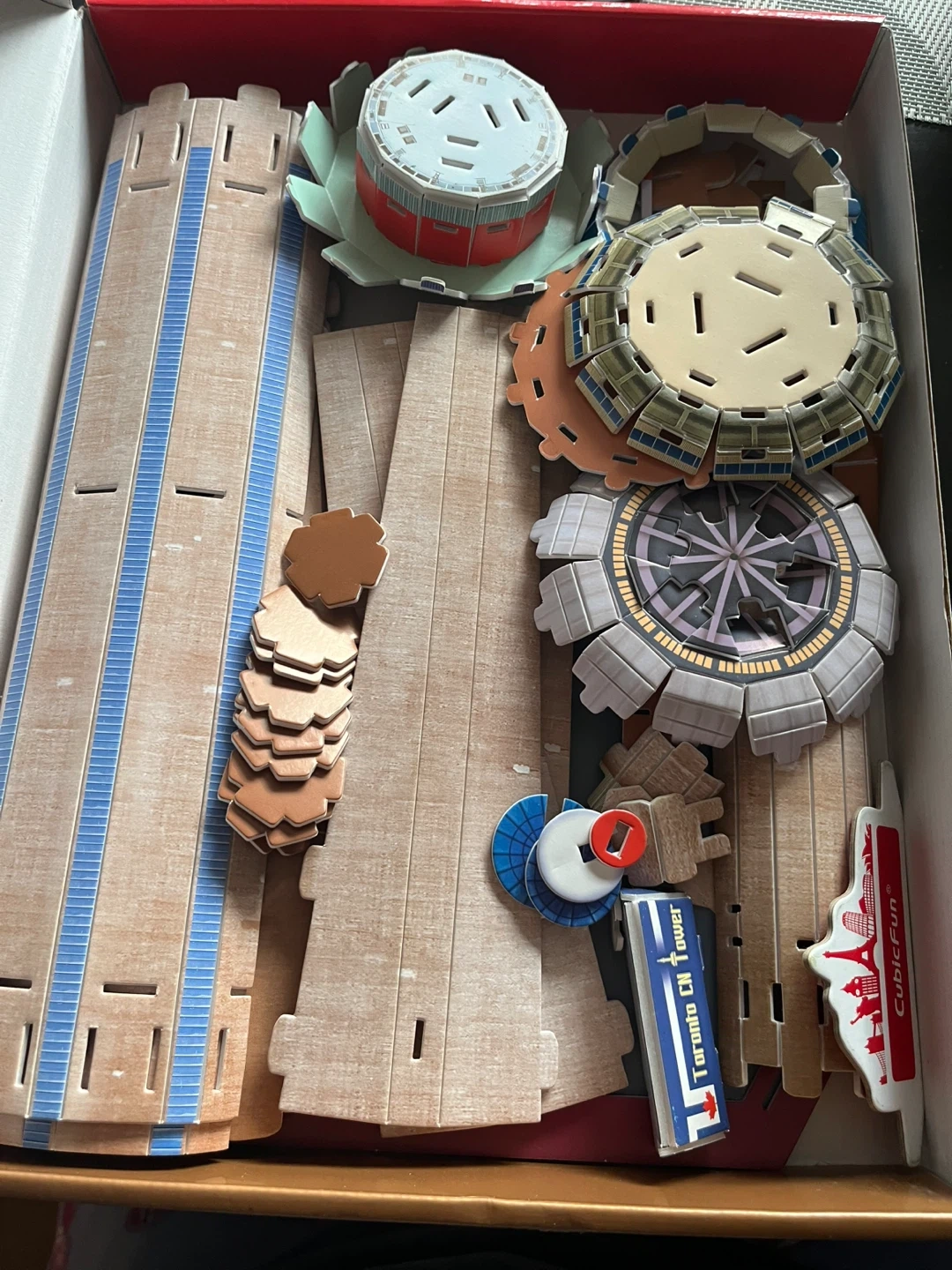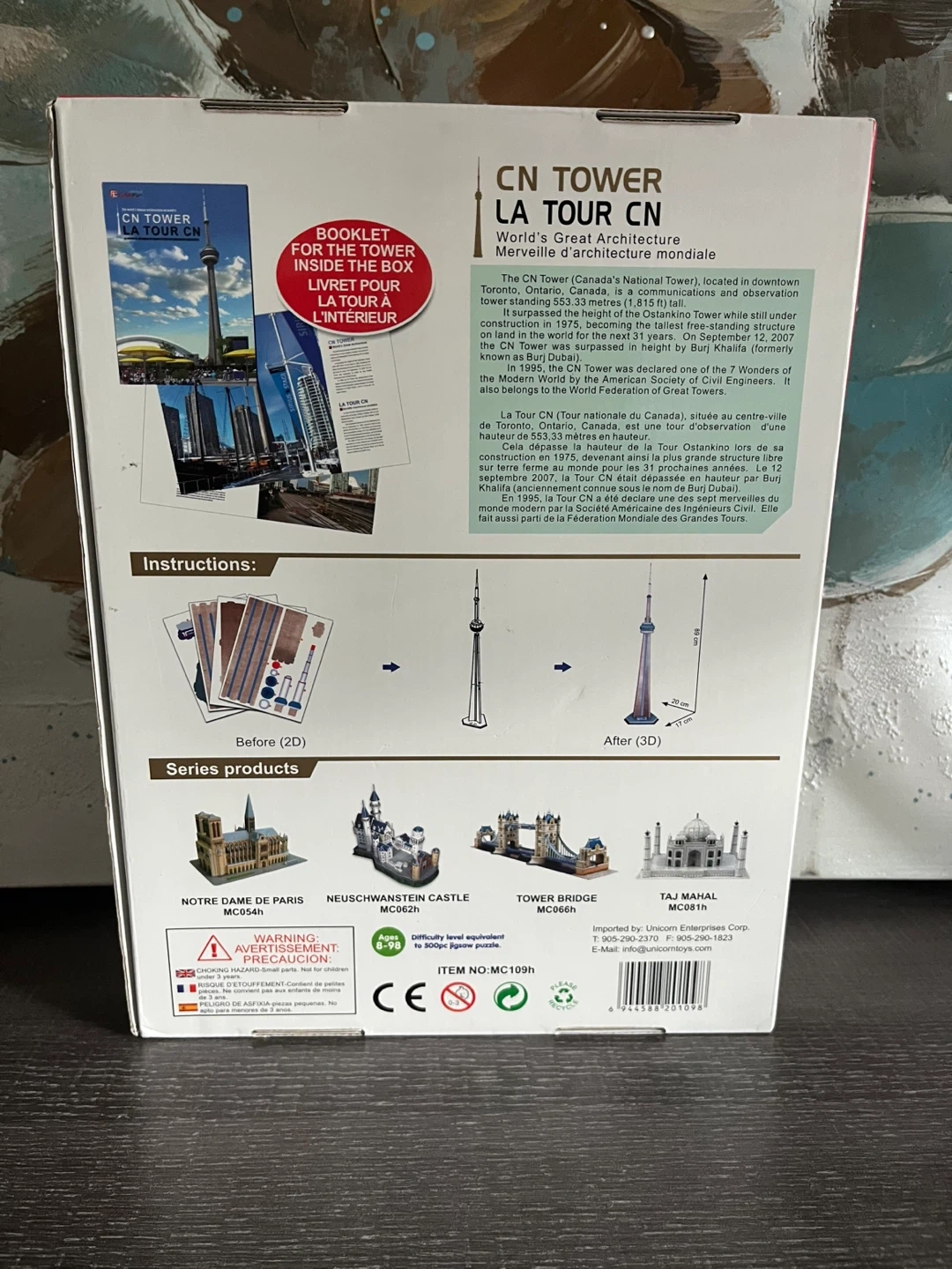 Putting together this CubicFun CN Tower 3D puzzle is a fun activity! It includes 48 pieces and comes with the original box and instructions. It's easy to assemble and no scissors or glue are required! Pick up in Utopia
