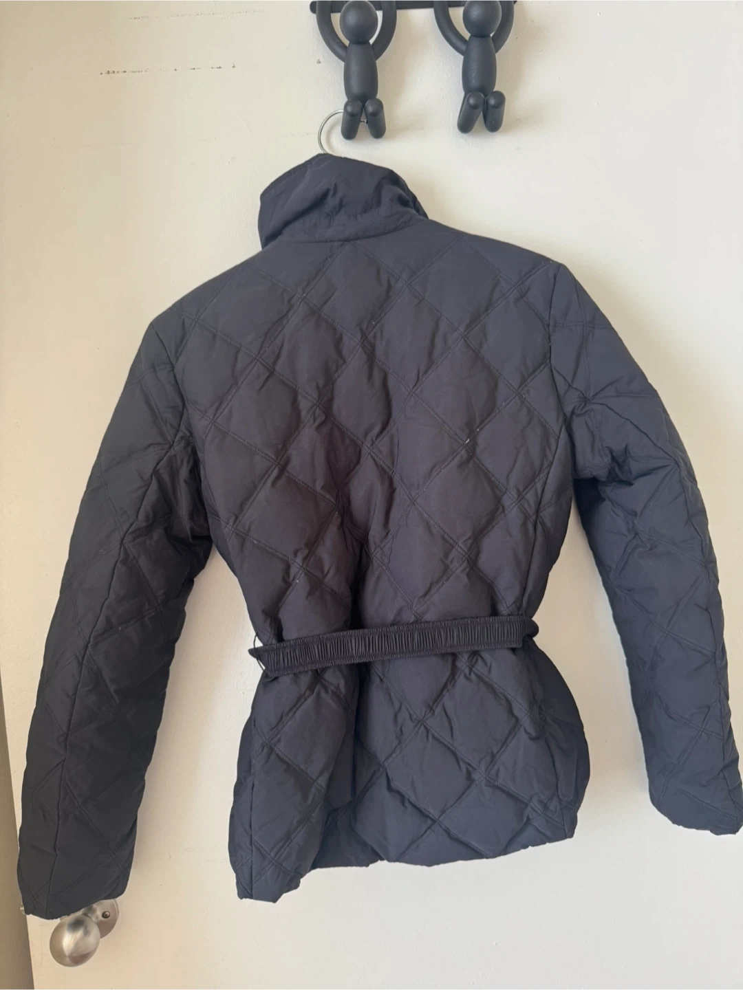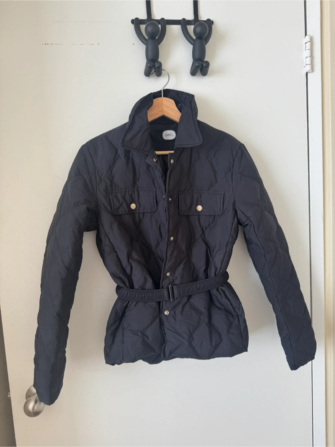 Selling a stylish DEWL quilted jacket in black! It features a flattering belted waist and a classic quilted design. Size: 55 Material: 52% Polyester