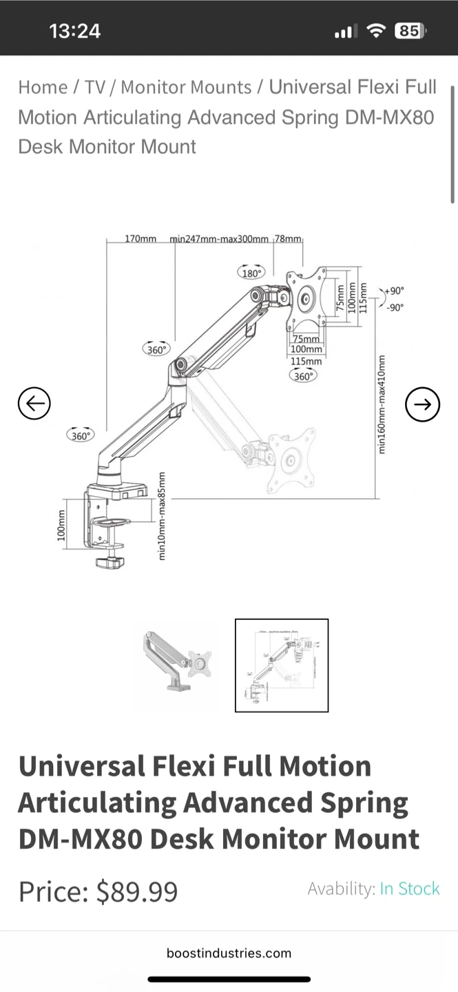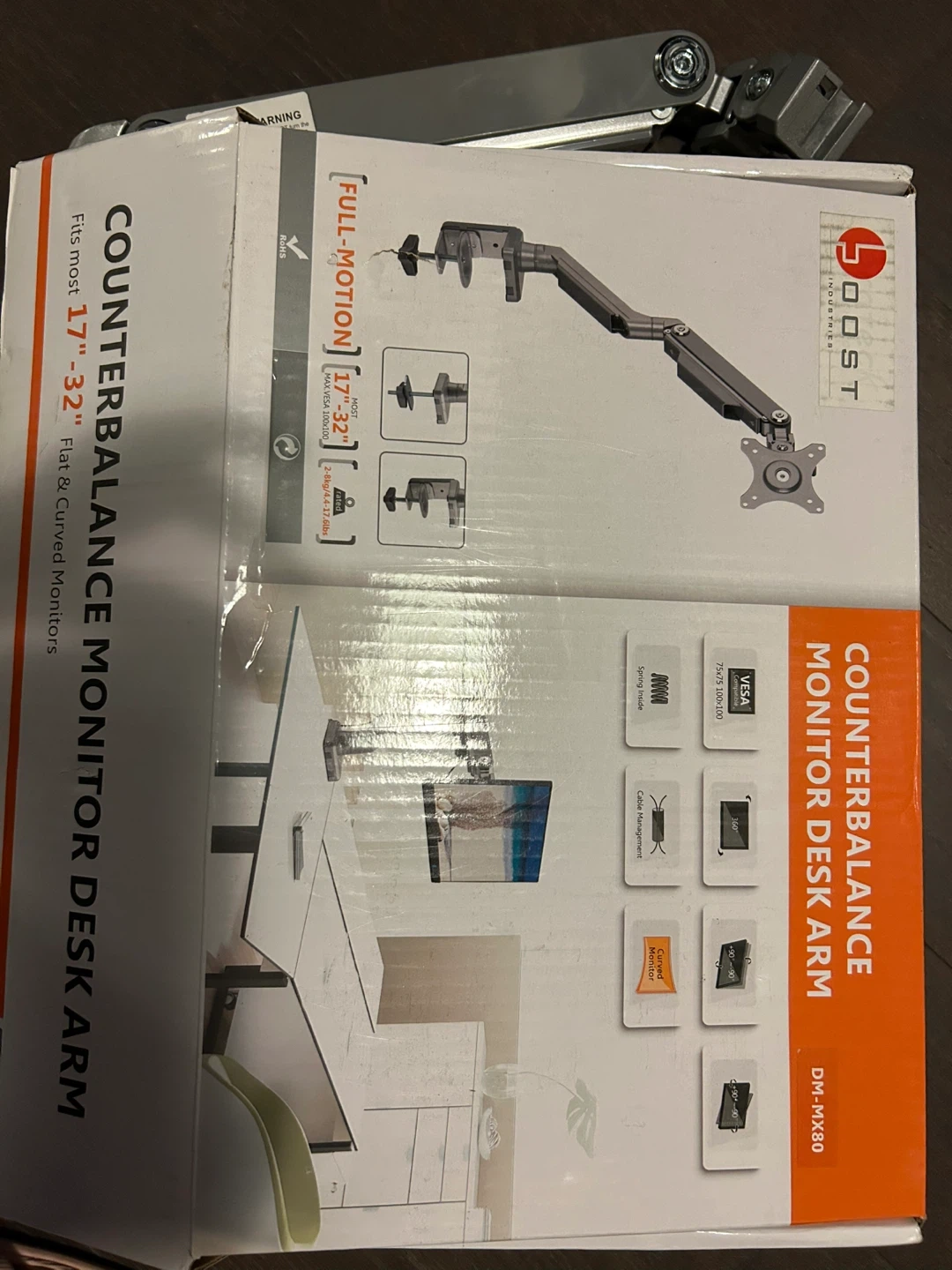 Selling a Boost Counterbalance Monitor Desk Arm, model DM-MX80. It fits most 17"-32" flat & curved monitors. Comes with the box and instructions. The original price was $89.99 Here is the link to the video https://youtu.be/GRS_WPBnBvg?si=O5INgNivTg3v7PnG Pick up in distillery District