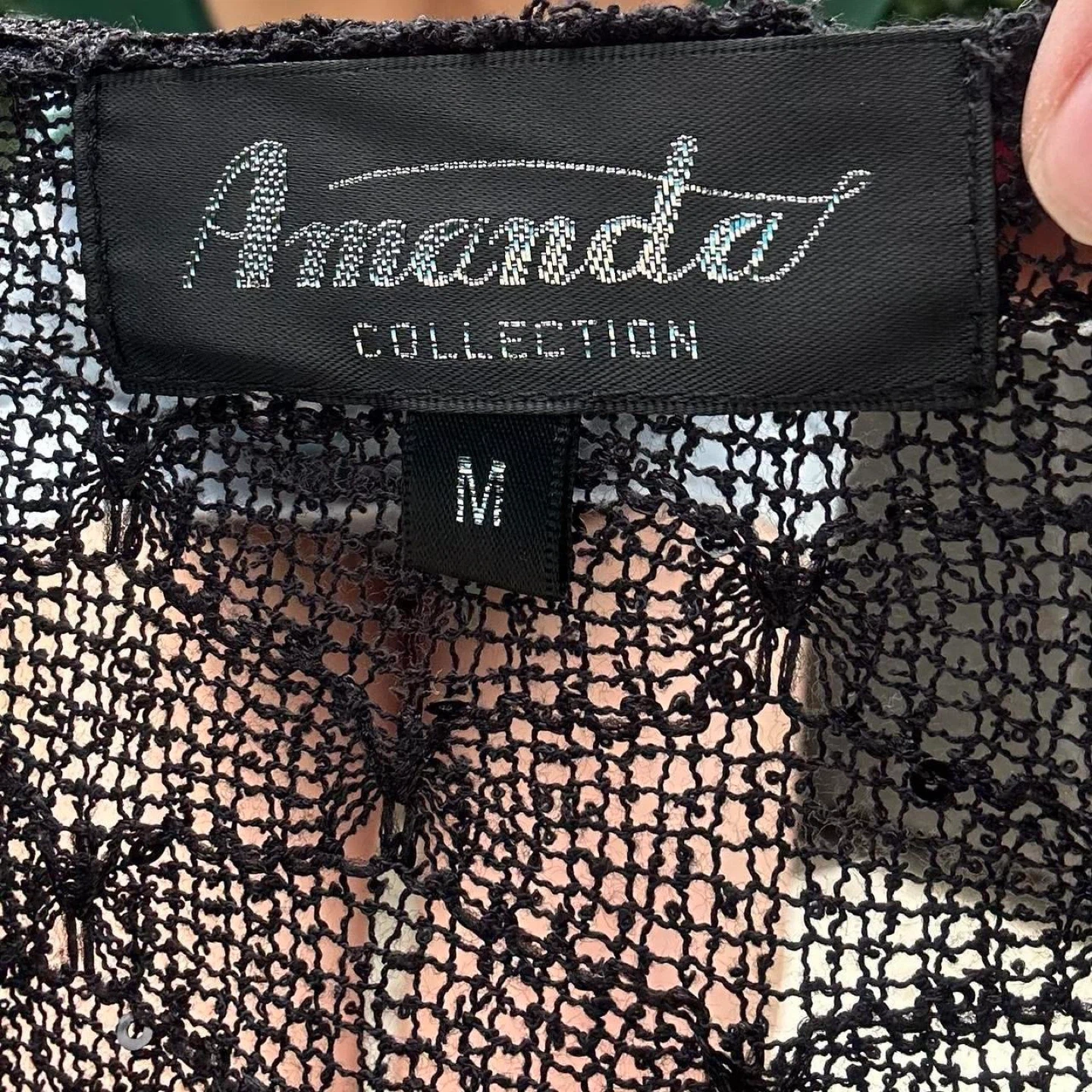Vintage black sheer knit cardigan shawl with sequence details