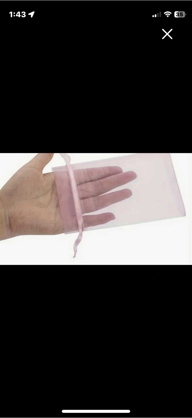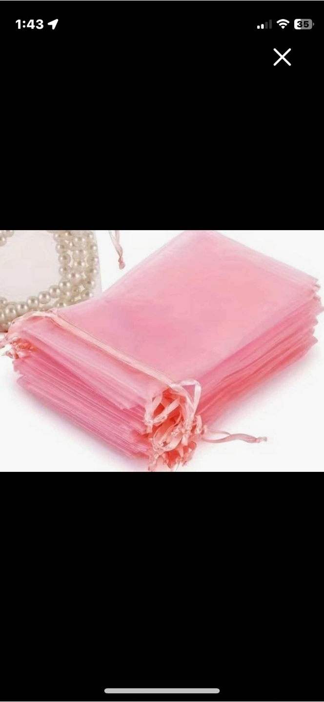 These are 9 pretty pink organza drawstring bags. They're great for jewelry, party favours, or small gifts.
