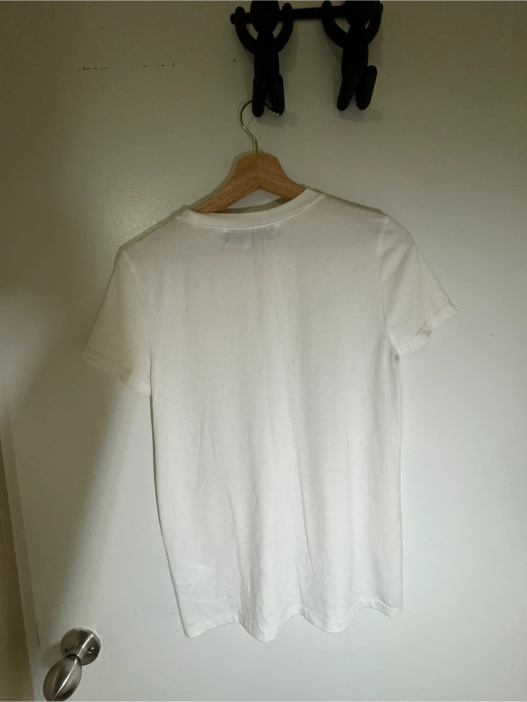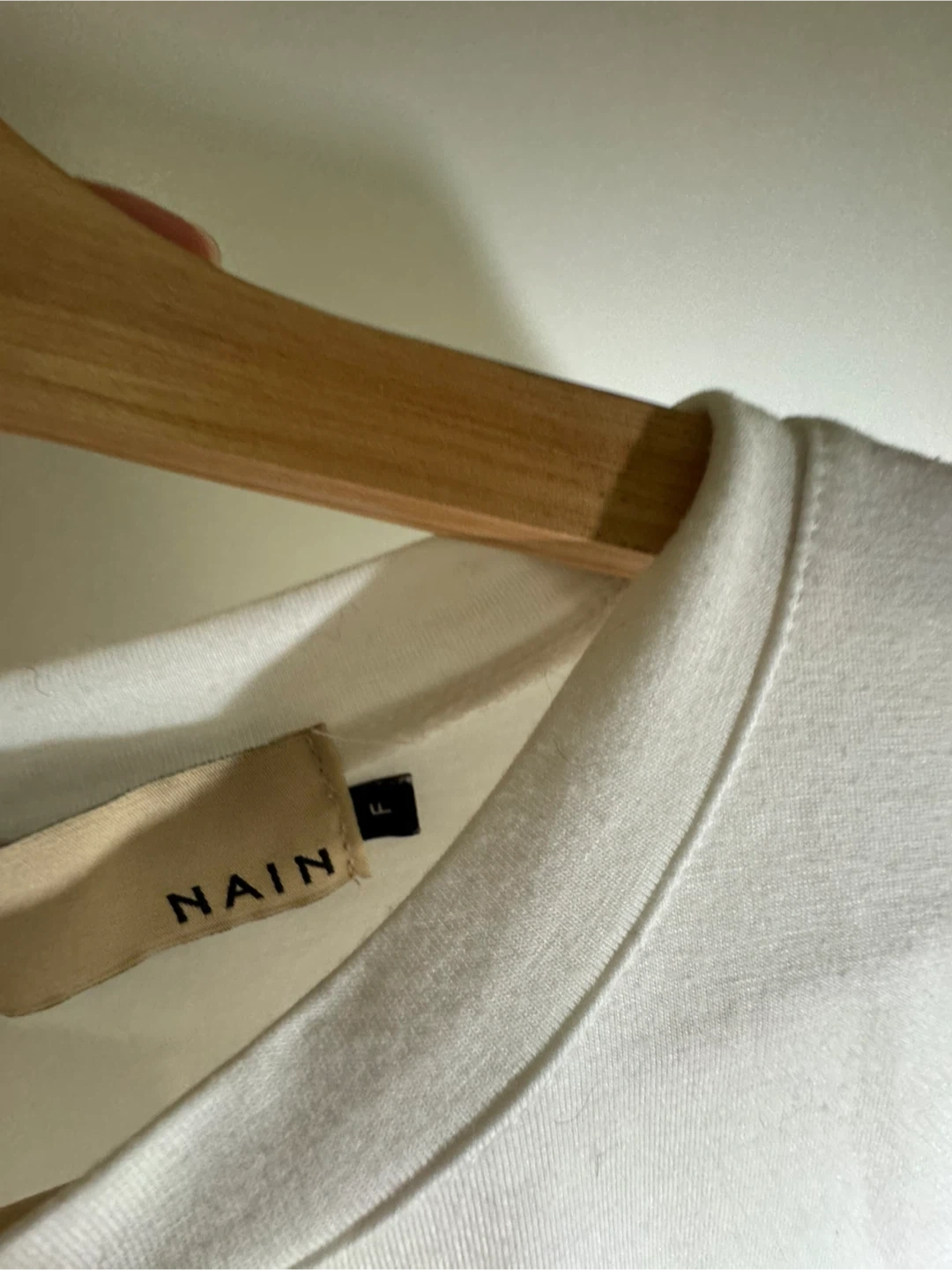 Selling a NAIN white T-shirt in size F. It's in great condition and ready for a new home! A simple and versatile piece for your wardrobe