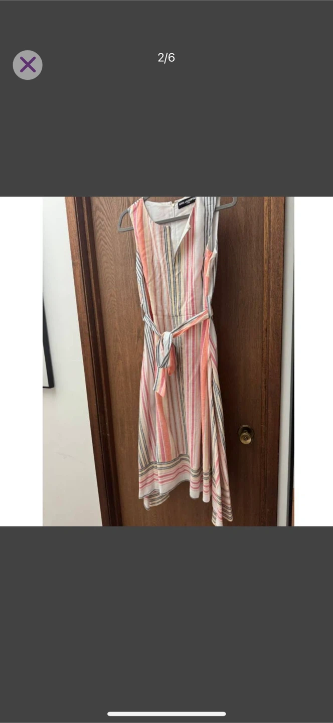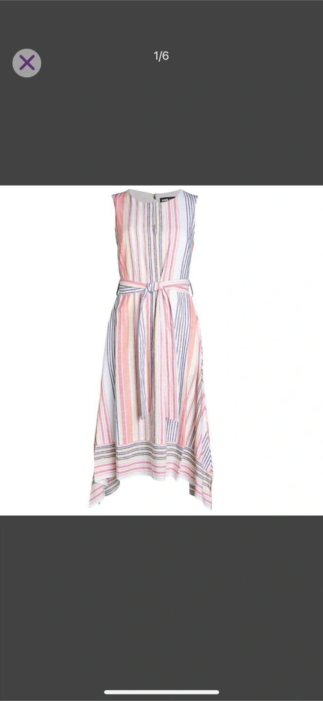 Breezy striped linen-blend flare dress patterned in multi-stripes can be styled with its optional tie-belt for a fit-and-flare silhouette.