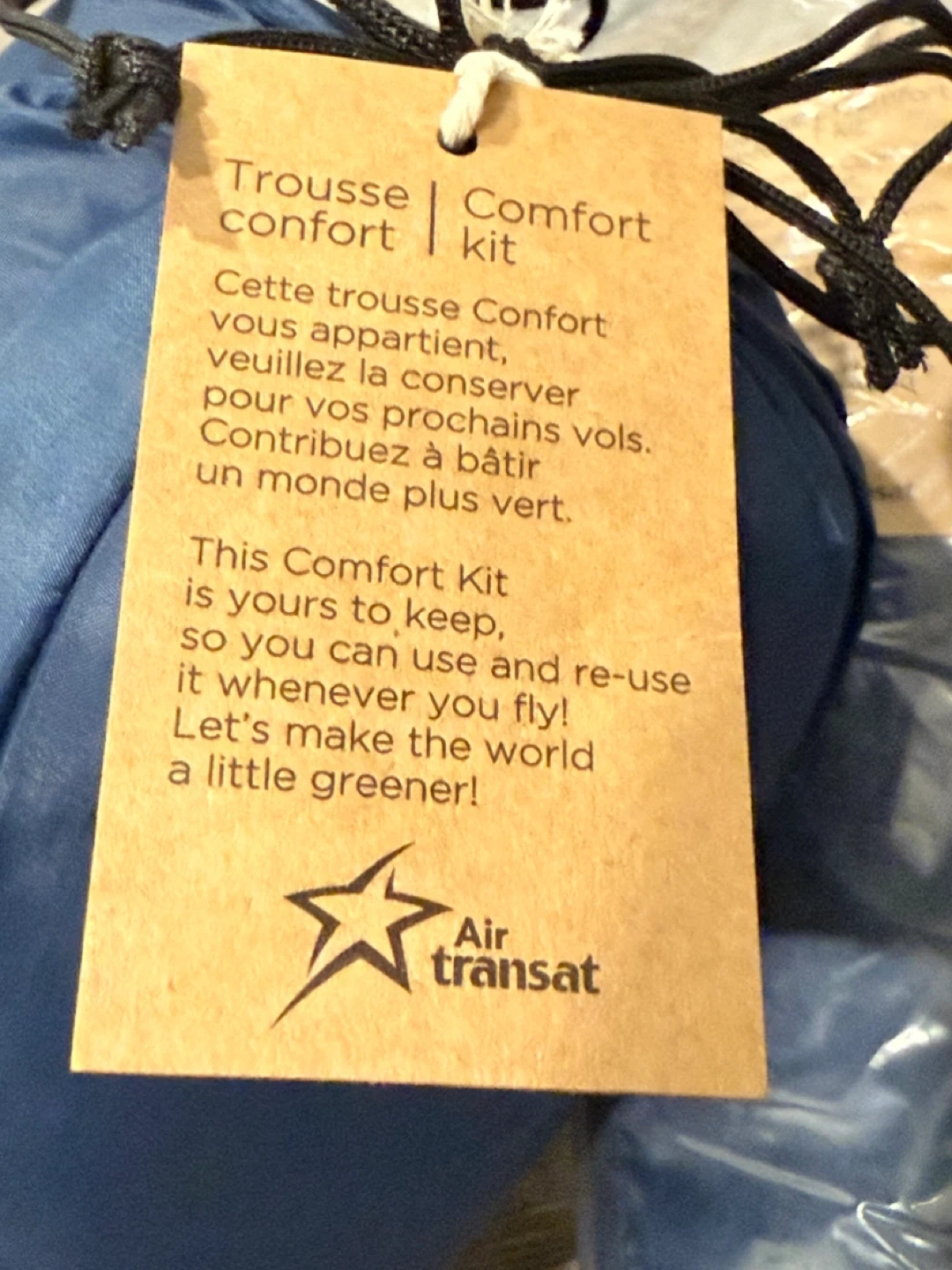 77Selling 2 brand new Air Transat Comfort Kit’s in the original packaging and ready for your next flight. This kit is yours to keep and reuse whenever you fly. Let's make the world a little greener! Never opened. One packet is still sealed. Pick up Sage Hill Cash only Pet and smoke free home Check out my other listings