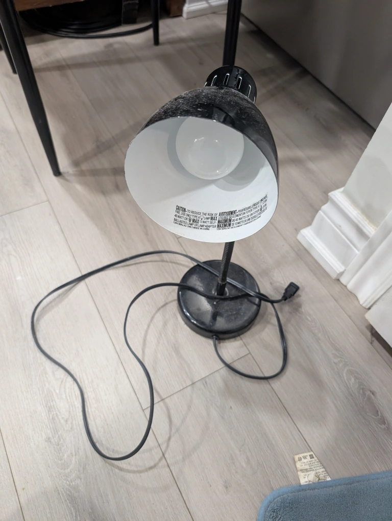 38Selling a black desk lamp. It's in good condition and ready to brighten up your workspace or reading nook!