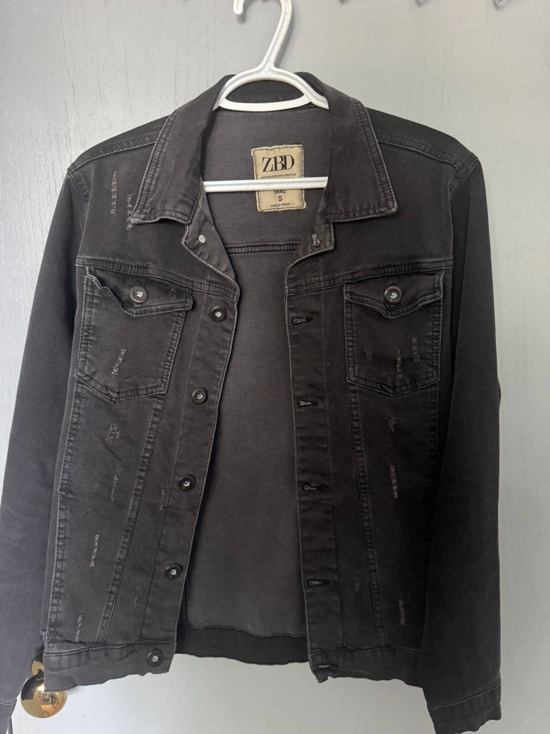 54Selling a ZBD black denim jacket in size small. It's in good condition and has a slightly distressed look. Great for layering!